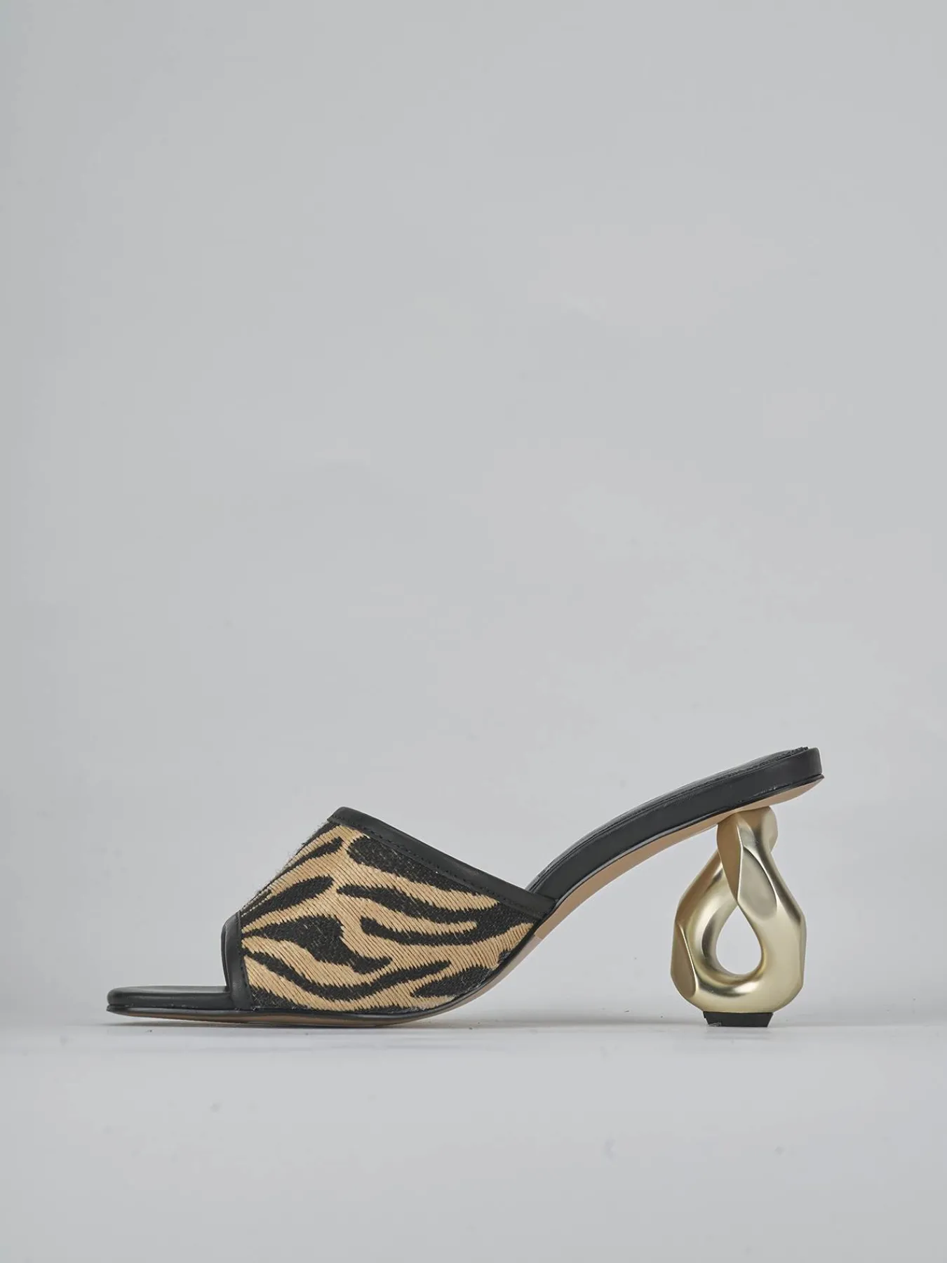 Ciabatta tacco 8 cm fondo in leggera gomma e soletto interno in vera pelle. Tomaia in morbida pelle foderata int essuto, punta leggermente squadrata, fascia unica, bordo spesso e nuovissimo tacco in metallo di design. Per un look che ti farà notare.
