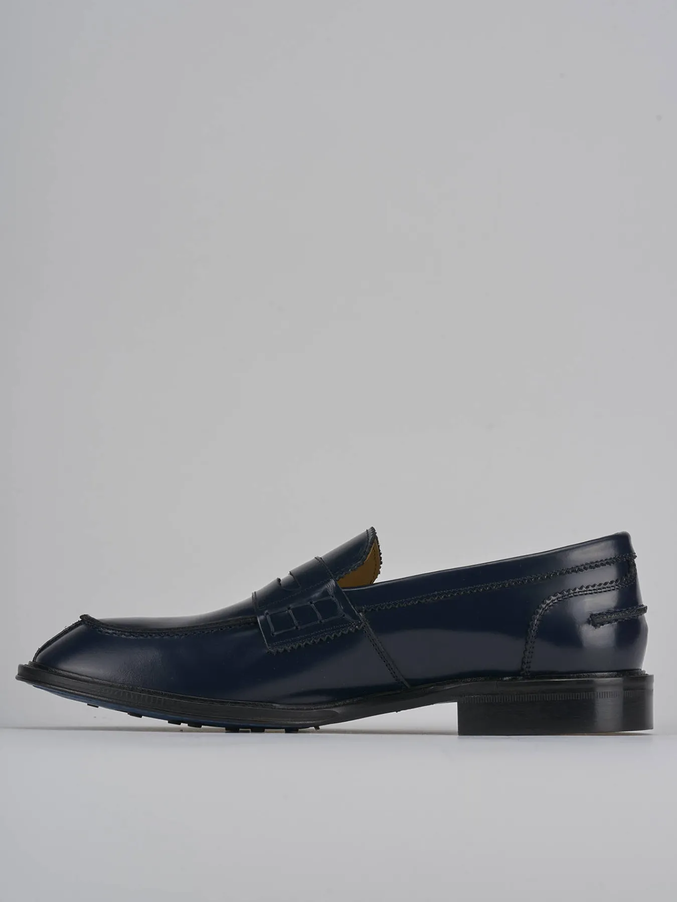 La punta squadrata e le cuciture in rilievo eseguite a mano aggiungono un tocco di sofisticatezza artigianale.