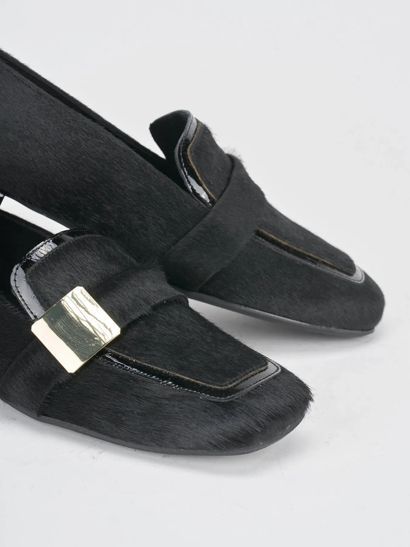 La tomaia è realizzata in morbida pelle ricoperta in cavallino, offrendo un tocco di lusso e raffinatezza.