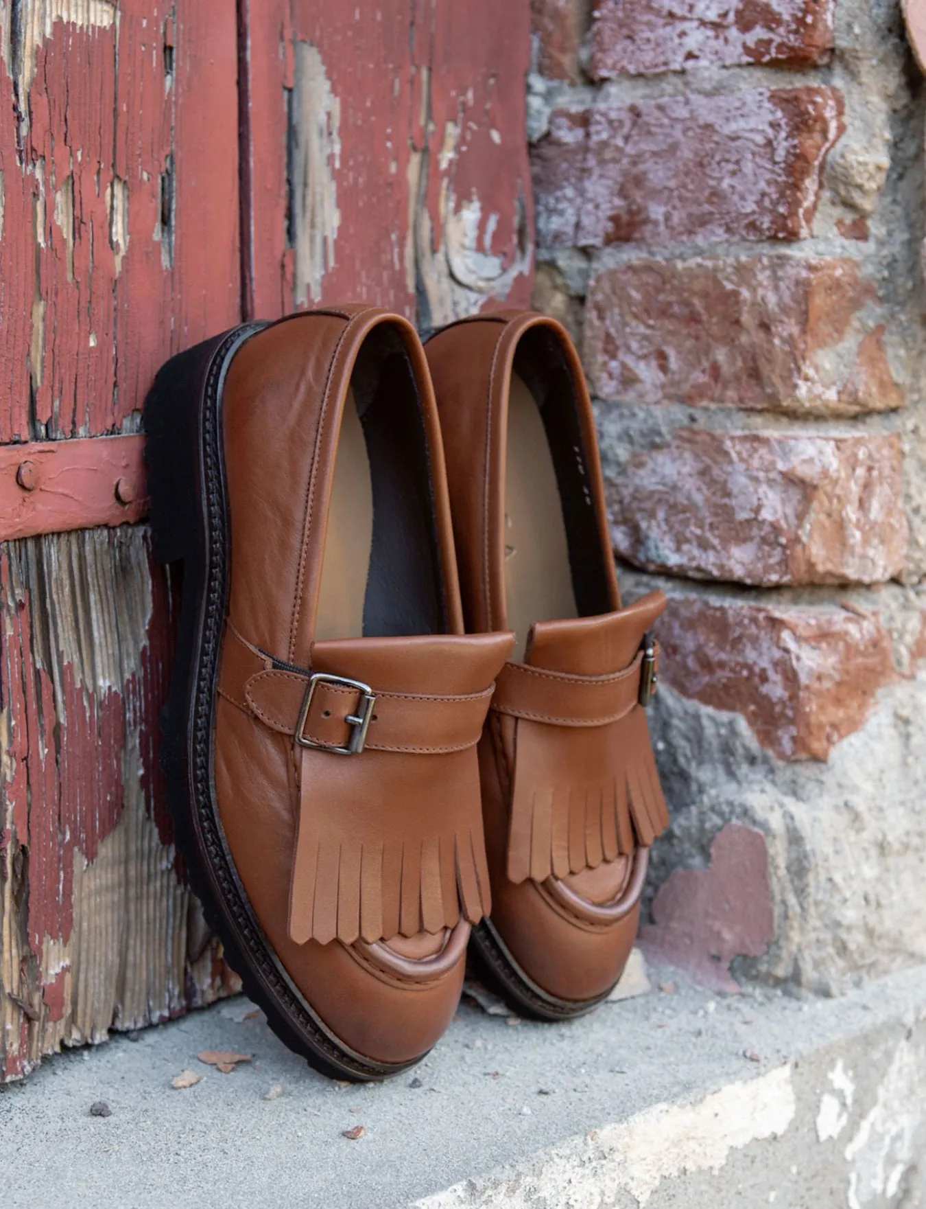 Il fondo leggermente carroarmato in gomma e il soletto interno in vera pelle assicurano il massimo comfort per tutta la giornata.