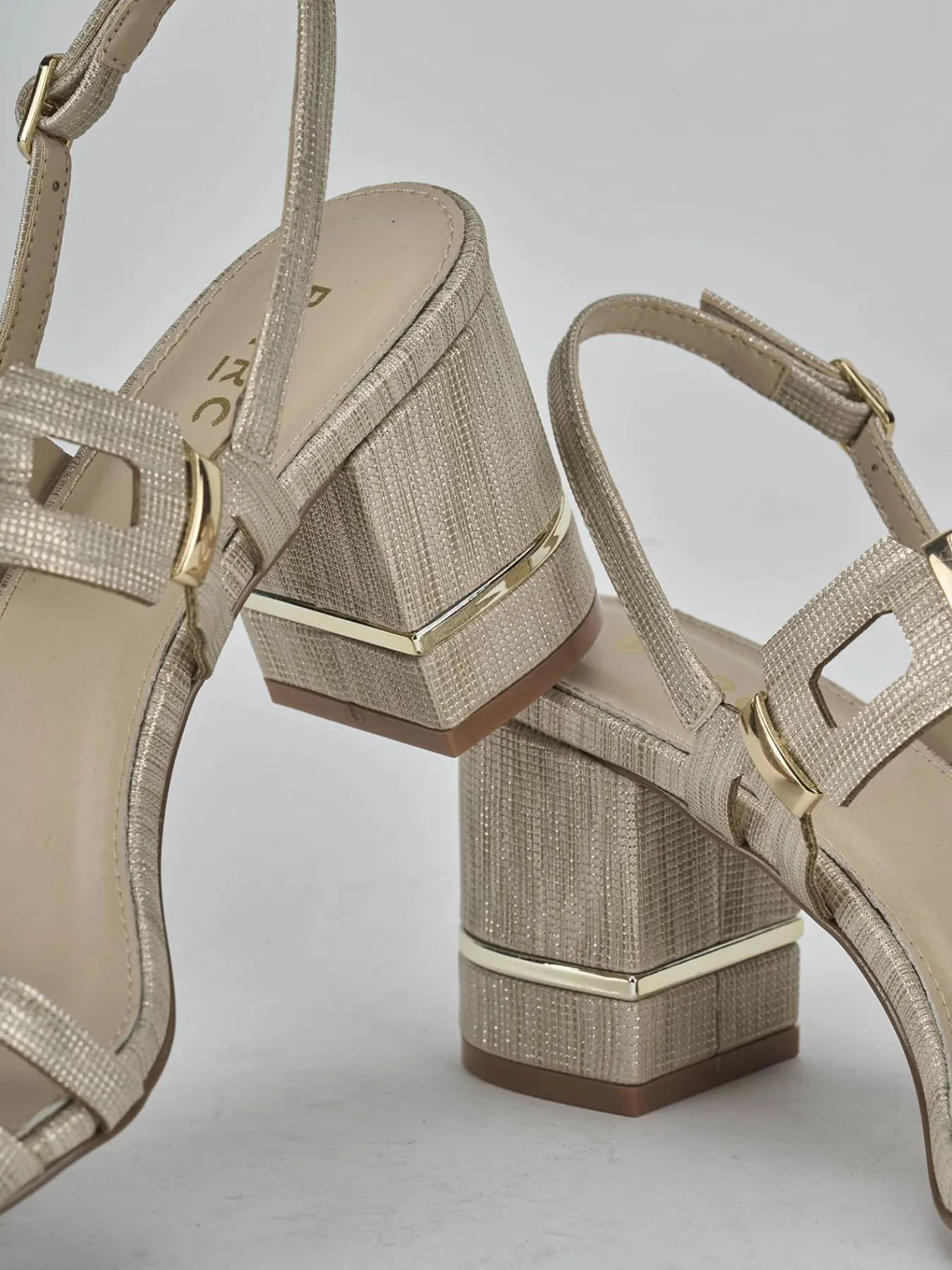 Sandalo tacco 9 cm fondo in leggera gomma e soletto interno in vera pelle. Tomaia in morbida pelle, punta squadrata, due fasce con accessorio in metallo, cinturino con fibbia regolabile e tacco grosso per un look chic.