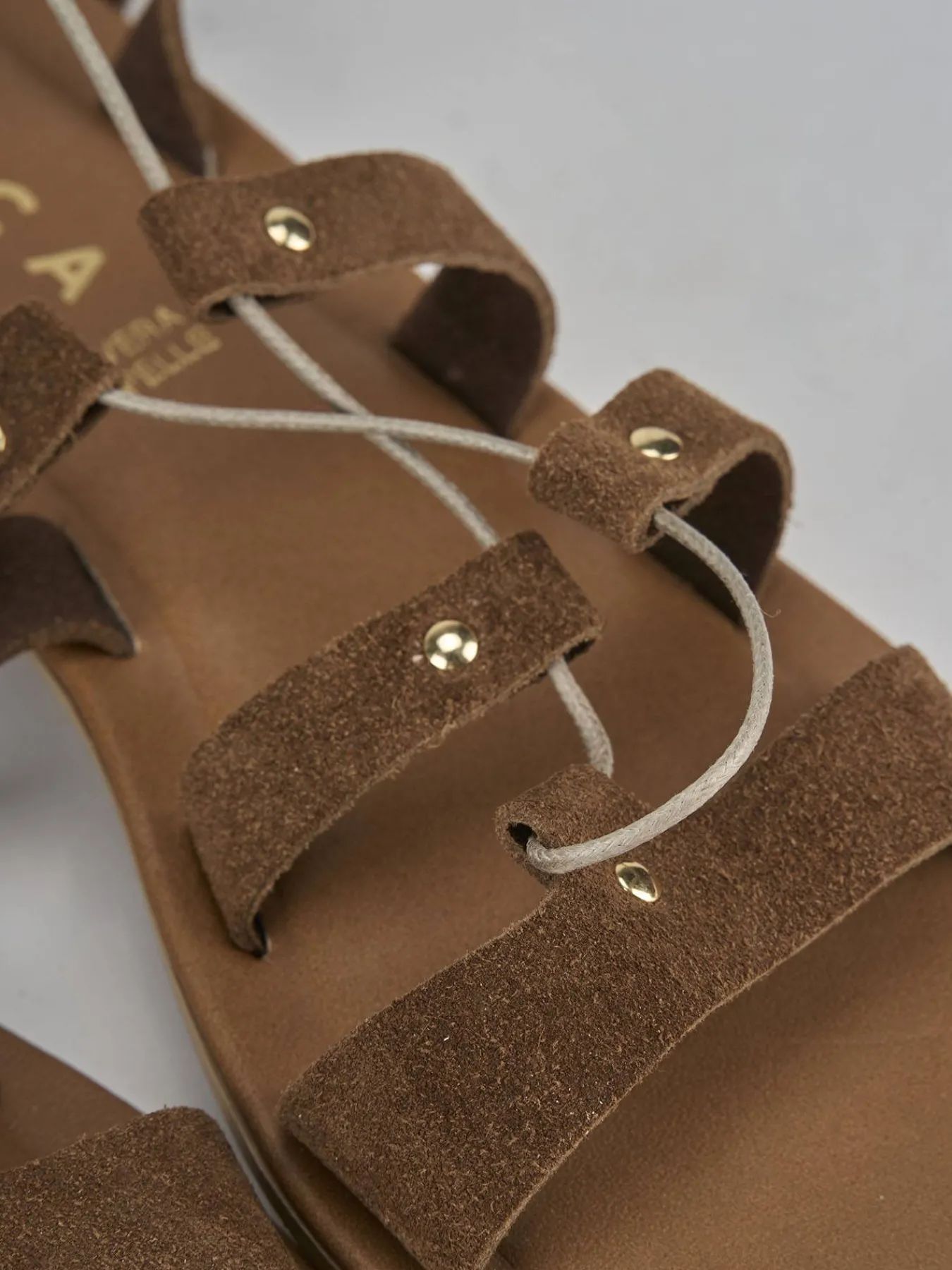 La tomaia in morbido camoscio avvolge il piede con delicatezza, mentre le fasce con chiusura alla schiava aggiungono un tocco di originalità.
