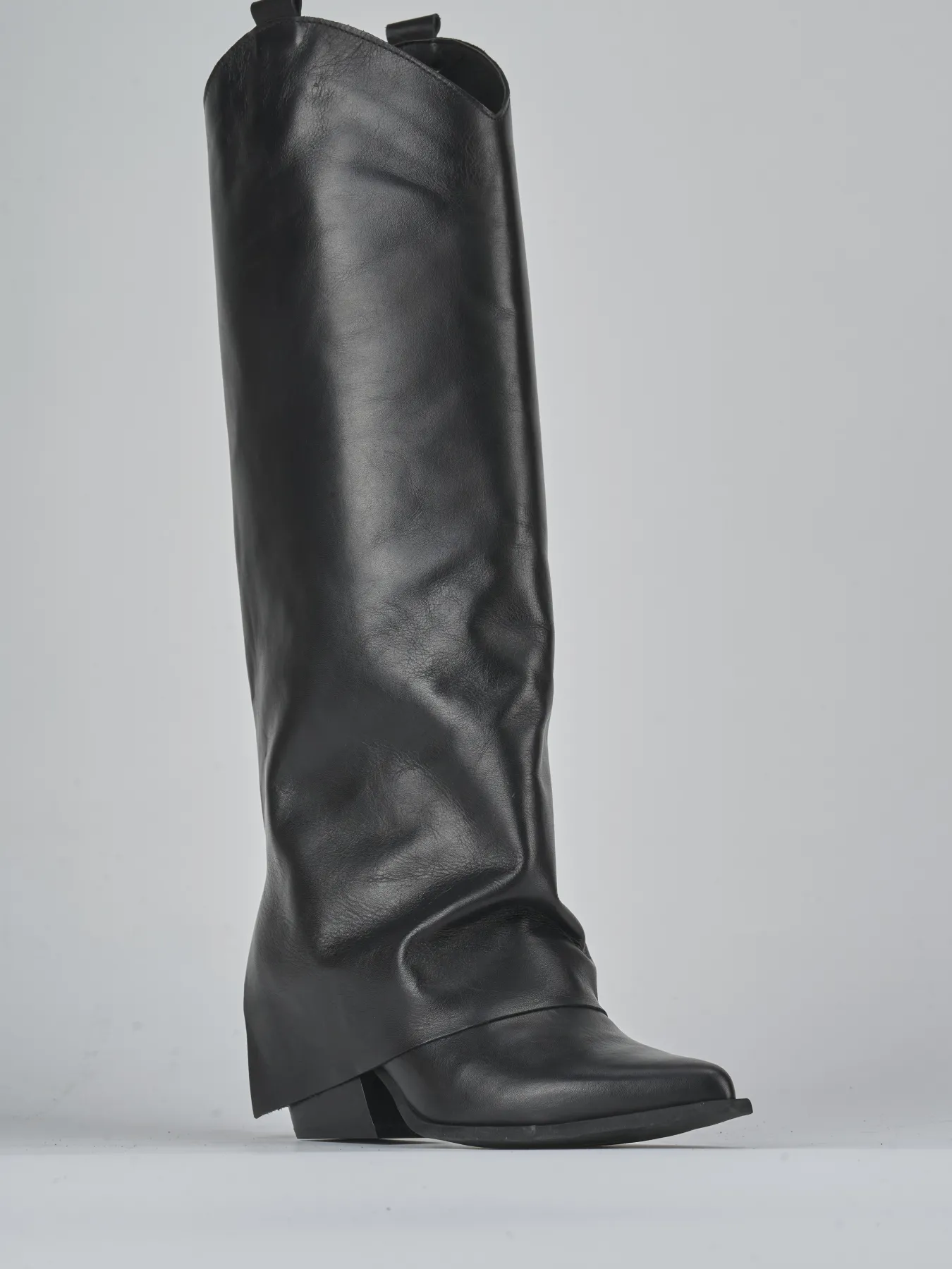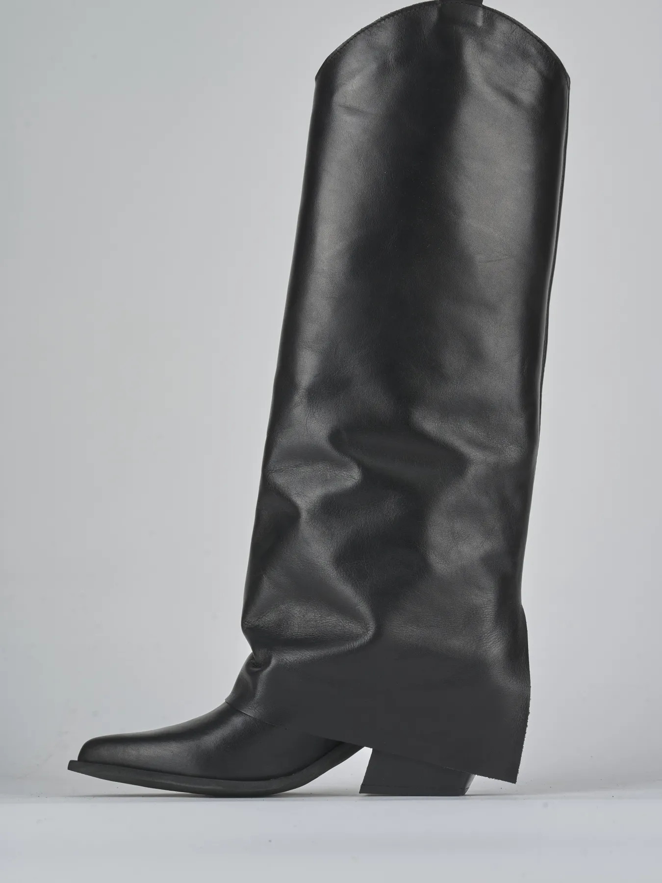 Il morbido risvolto si estende fino al tallone e l’altezza del gambale arriva appena sopra il ginocchio per un look audace.
