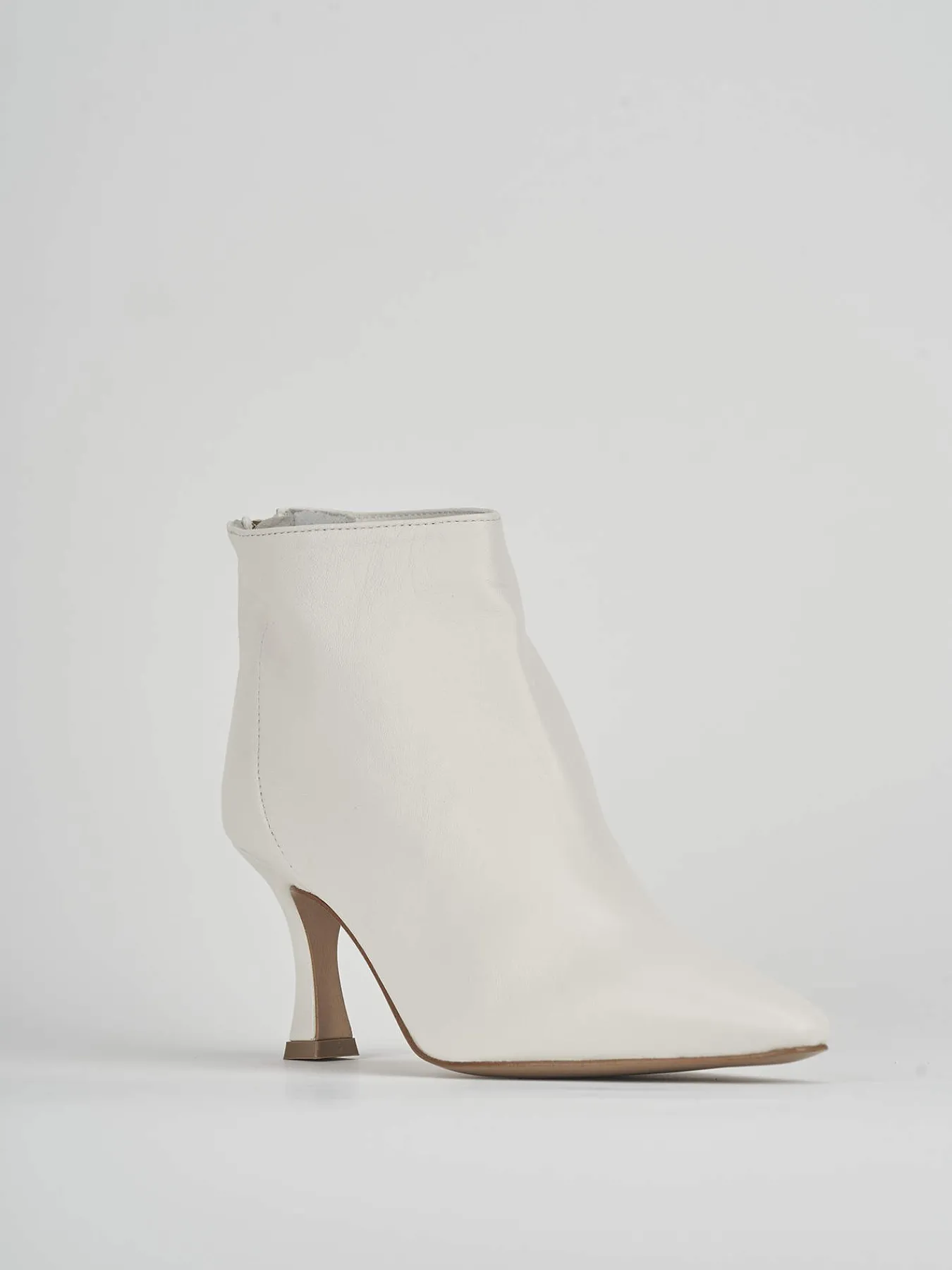 Stivaletto tacco 7 cm fondo in cuoio e soletto interno in vera pelle. tomaia in morbida pelle nappata, punta sfilata, cerniera posteriore super-chic per il massimo del comfort.