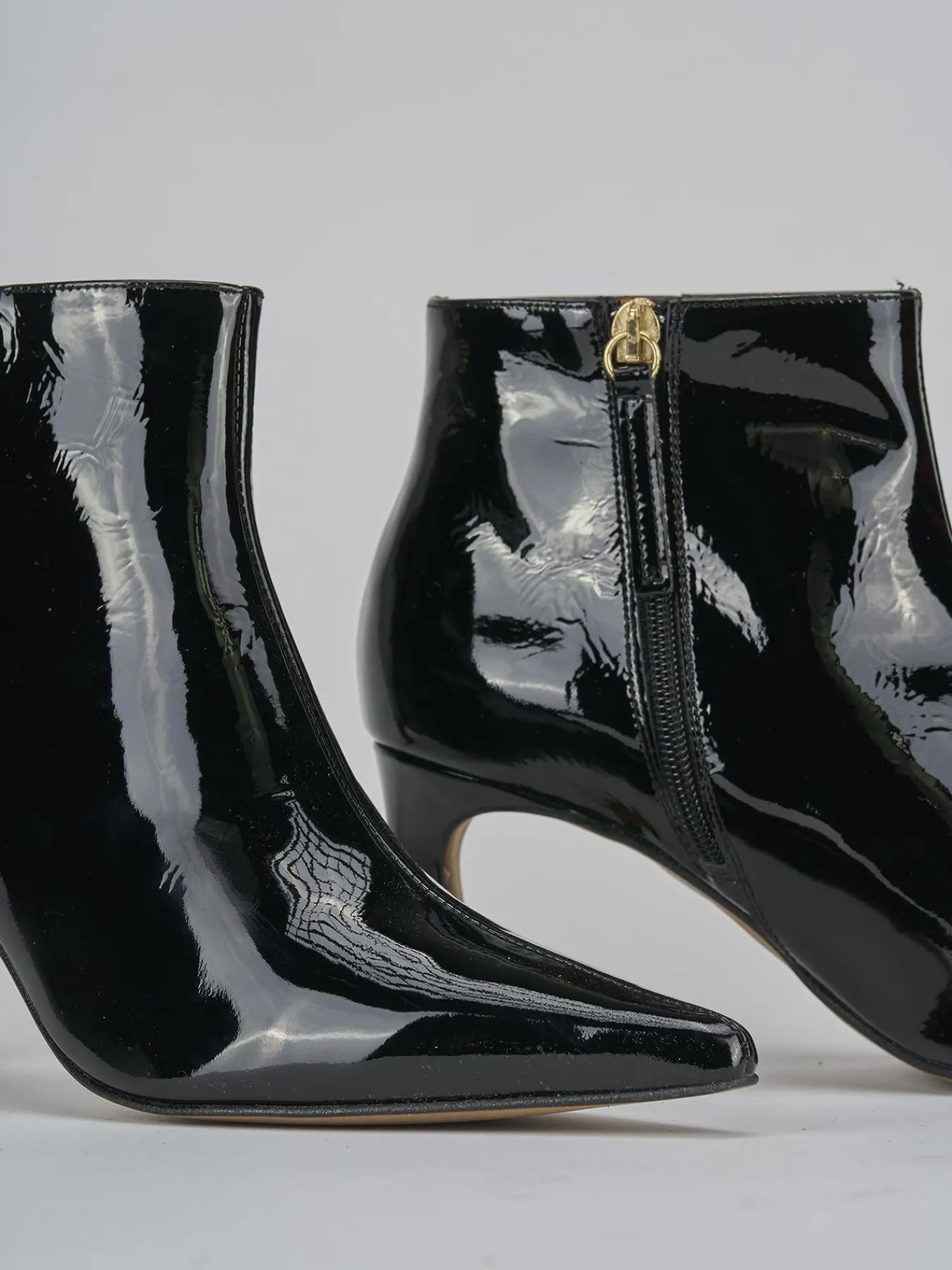Realizzati in vernice nera, questi stivaletti sono un must-have per chi ama uno stile minimalista e cool, ideale per ogni stagione.