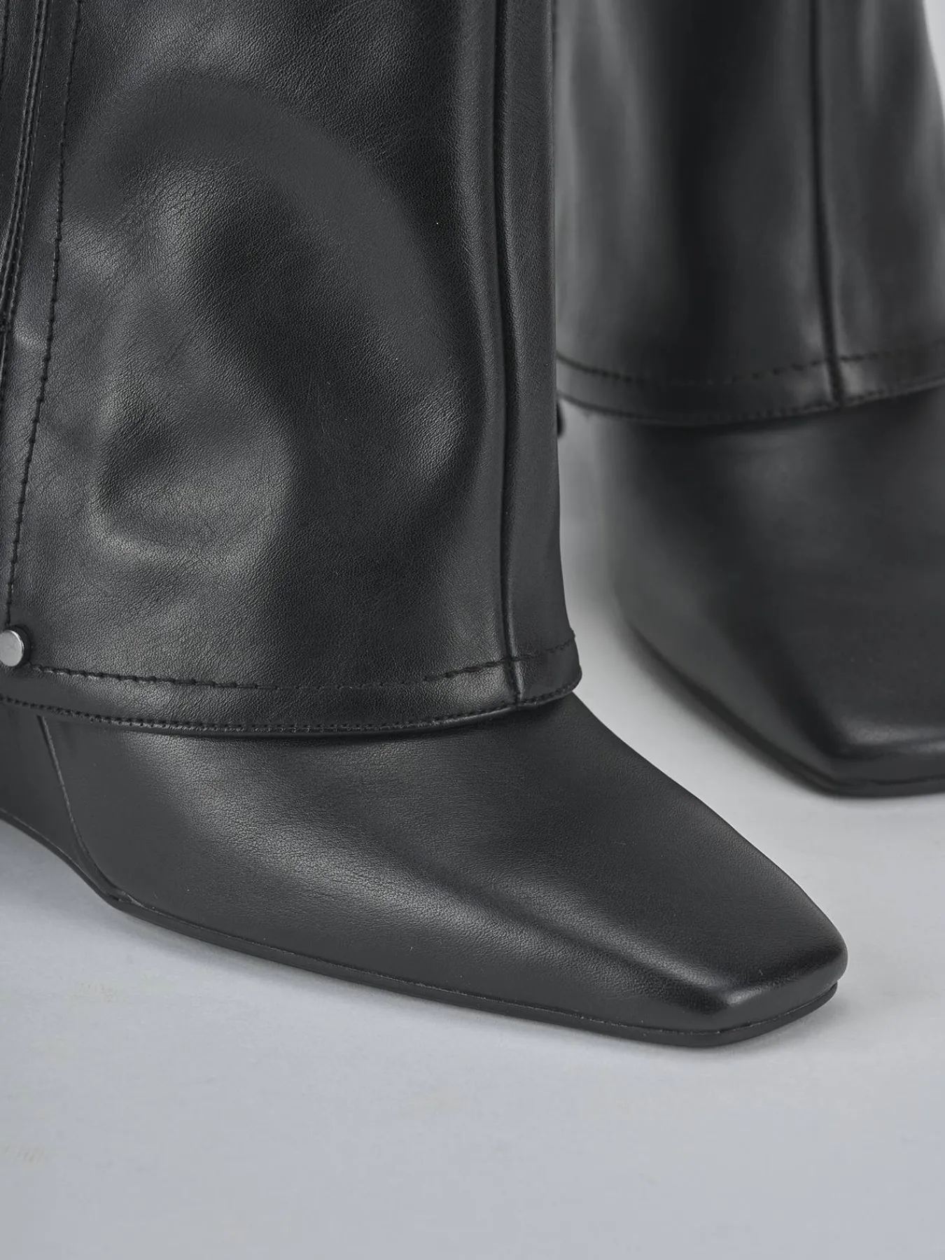 Realizzati in pelle sostenibile nera, questi stivali conferiscono un tocco di lusso al tuo guardaroba, mantenendo un impegno verso l’ecosostenibilità.