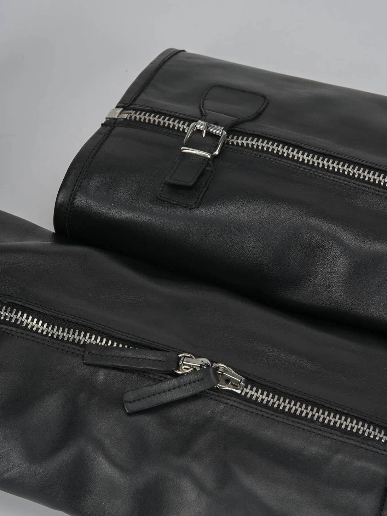 La cerniera laterale con doppio cursore aggiunge un tocco di praticità e modernità, mentre la fibbia regolabile offre una vestibilità personalizzata.