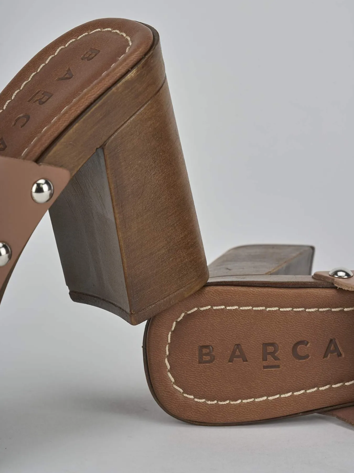 Il plateau anteriore di 2 cm e il tacco stabile effetto legno garantiscono un perfetto equilibrio tra comfort e altezza.