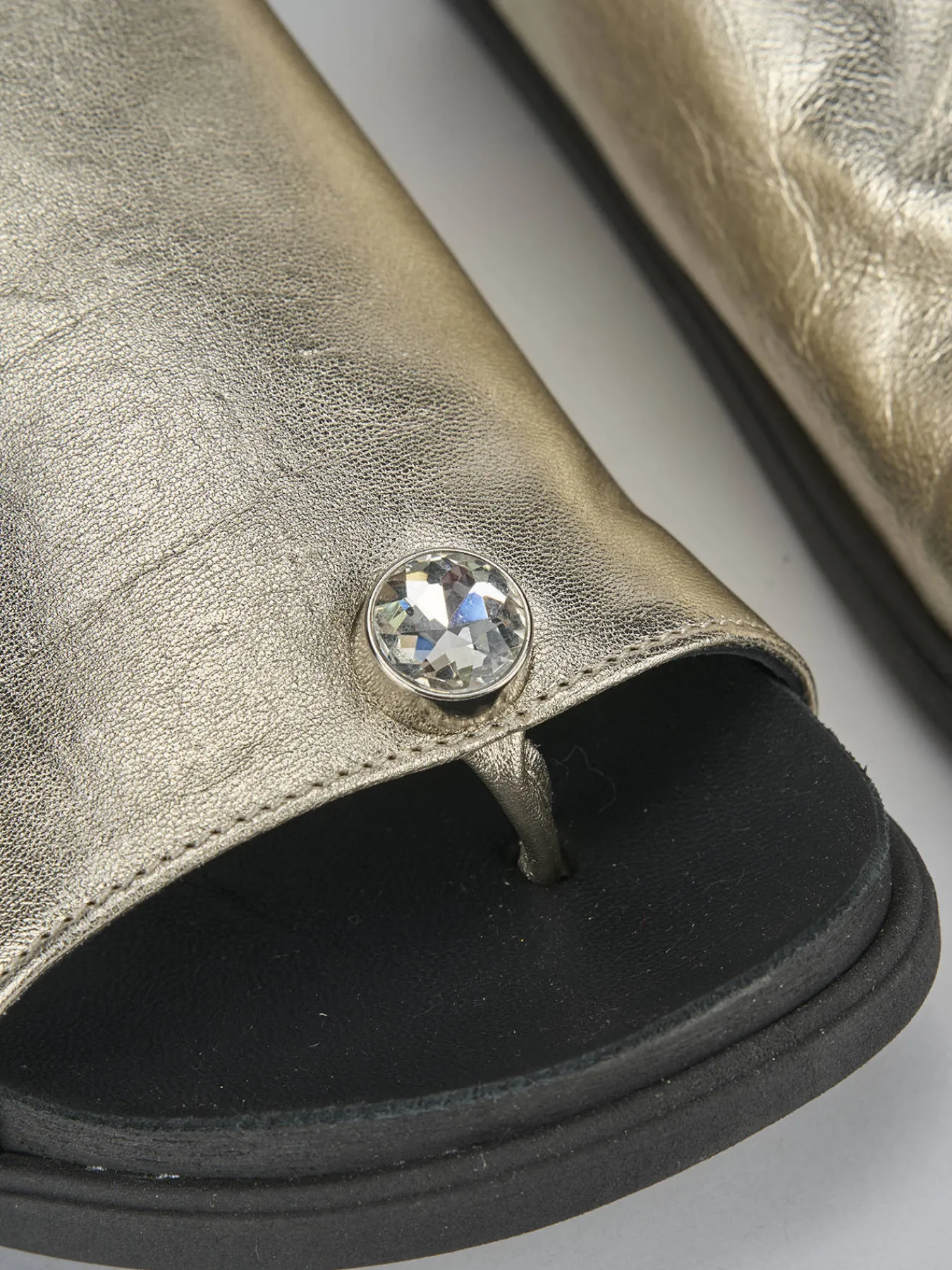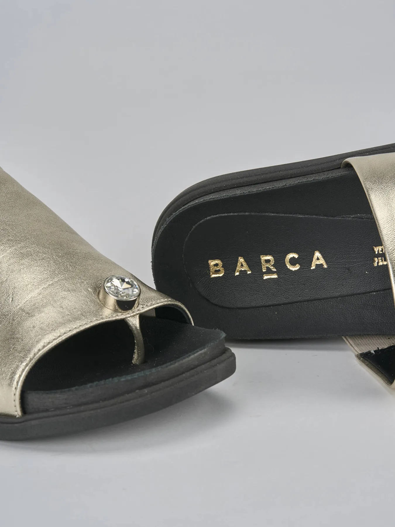 La tomaia è realizzata in morbida pelle con un raffinato effetto laminato, mentre la punta affusolata e la fascia unica conferiscono un tocco di classe.