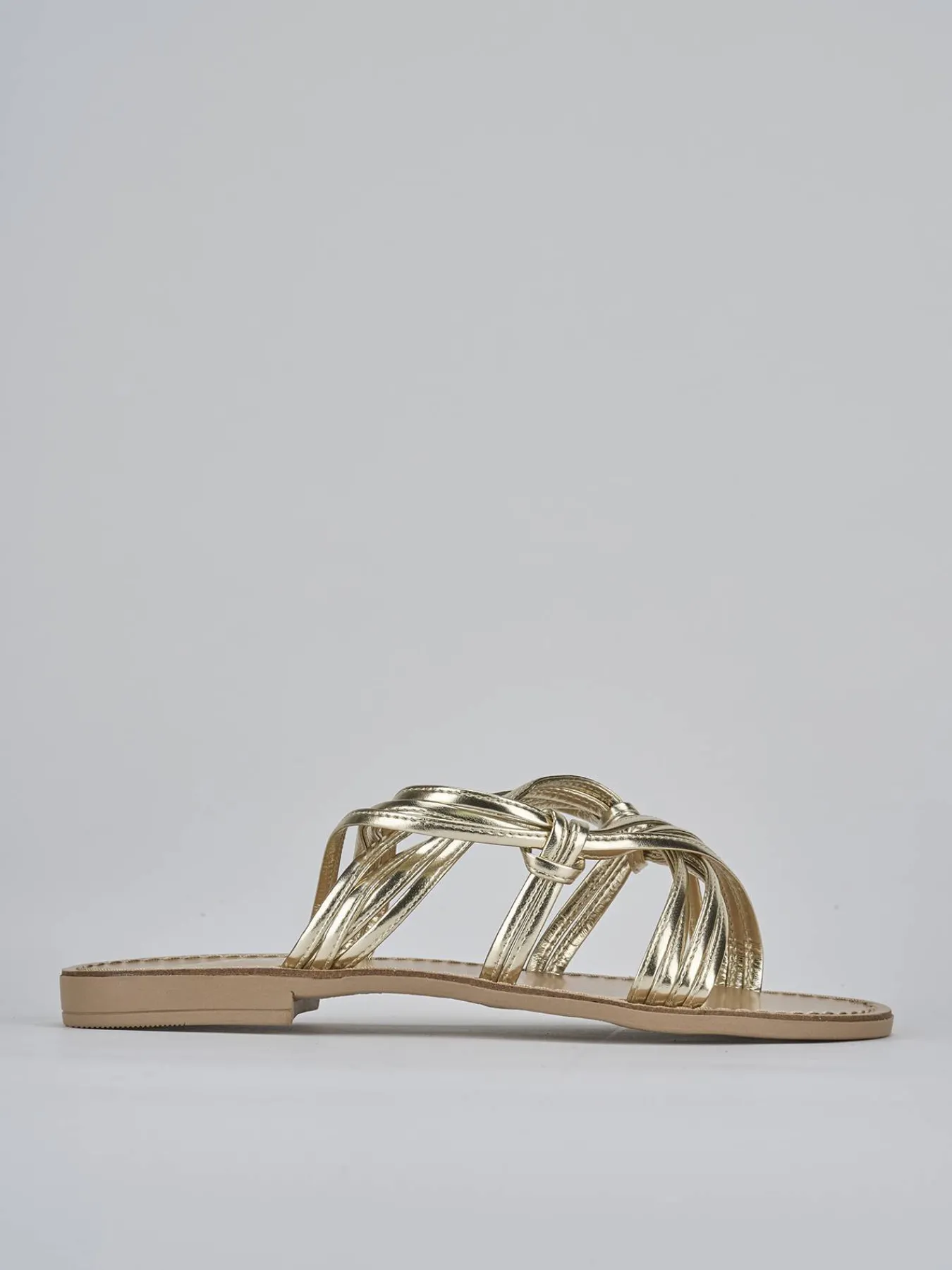 La tomaia in morbida pelle effetto laminato presenta affascinanti fascette intrecciate, donando un tocco di raffinatezza al tuo look.