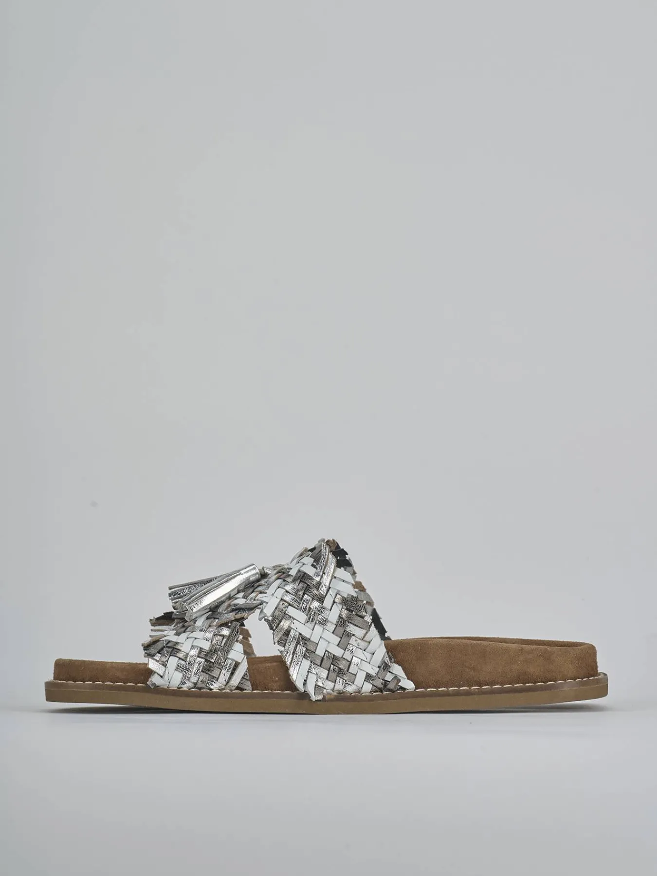 La tomaia è realizzata in morbida pelle laminata, finemente intrecciata, che dona un tocco di raffinatezza al tuo look quotidiano.