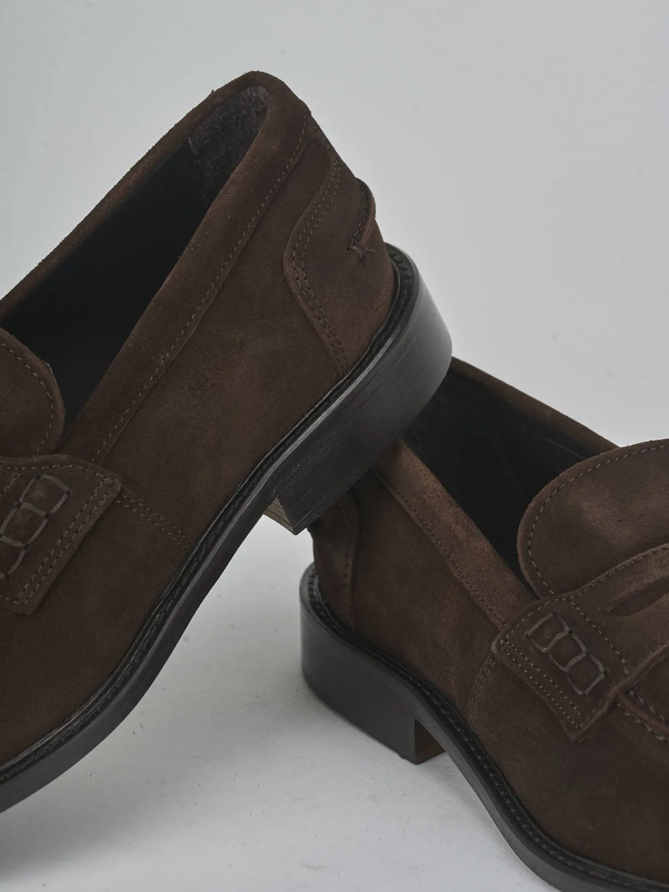 Realizzati in morbido camoscio, questi mocassini offrono una sensazione di lusso al tatto, mentre il colore testa di moro aggiunge un tocco di sofisticatezza a qualsiasi outfit.