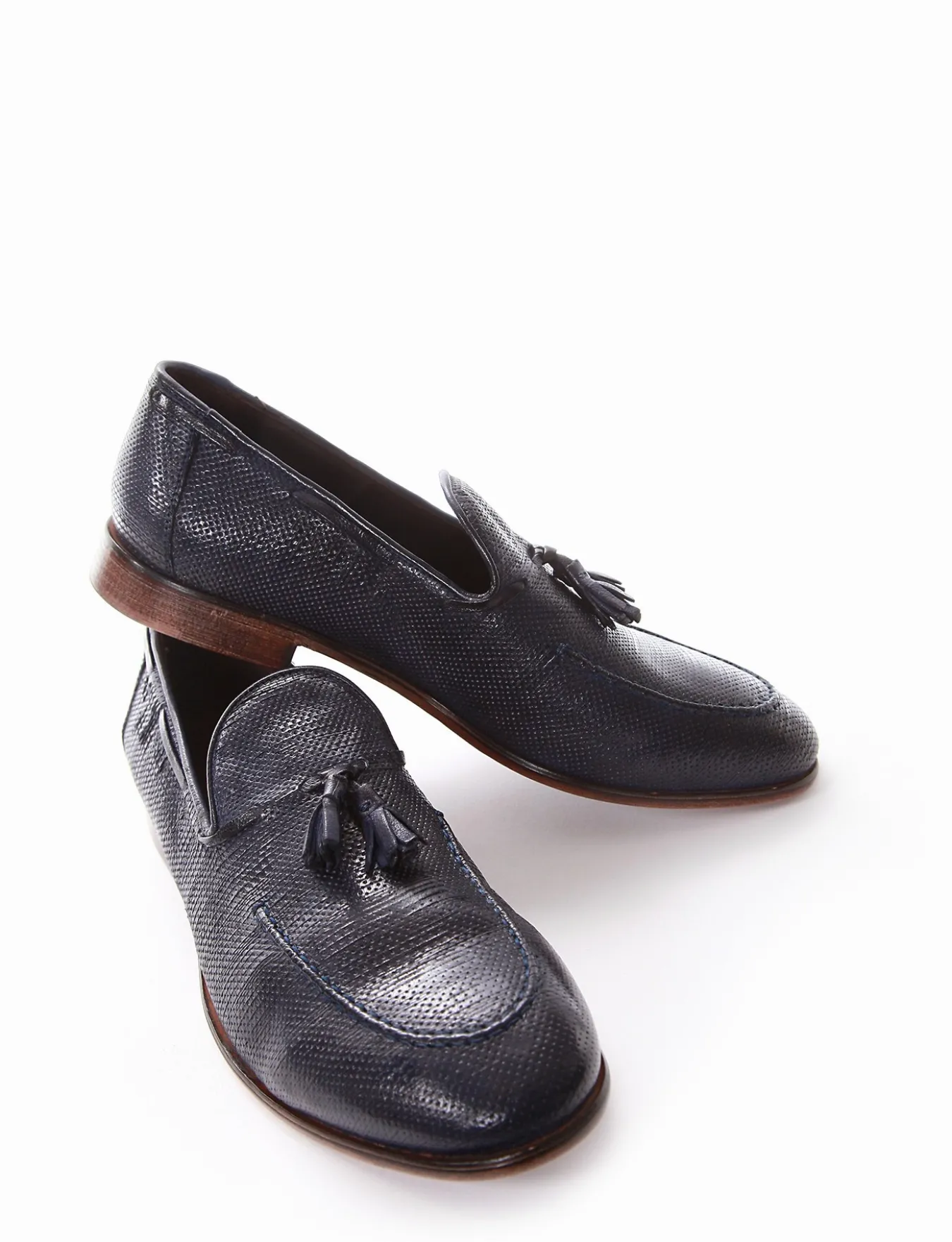 mocassino tacco 2 cm, fondo in cuoio e soletto interno in vera pelle. Tomaia in morbidissima pelle nappata interamente microforata, con punta tonda e fiocchetto sul collo del piede.