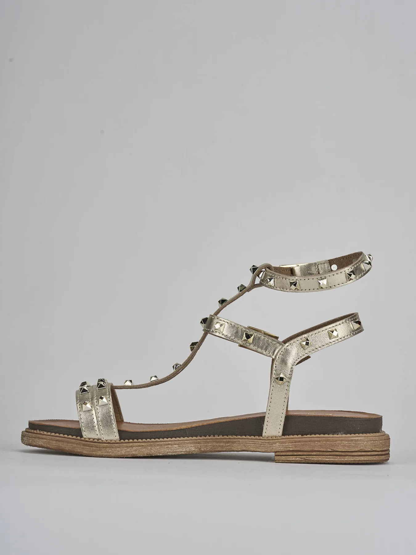 La tomaia in morbida pelle effetto laminato dona un tocco di lucentezza, mentre la punta affusolata e le fasce arricchite da borchie aggiungono un dettaglio chic al tuo look.