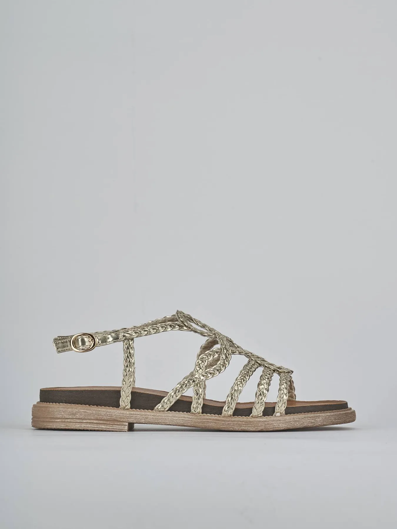 Sandalo tacco 2 cm fondo in gomma e soletto interno in vera pelle. Tomaia in morbida pelle finemente intrecciata, punta affusolata, fasce incrociate che formano delle gocce e cinturino con fibbia regolabile per un look cool.