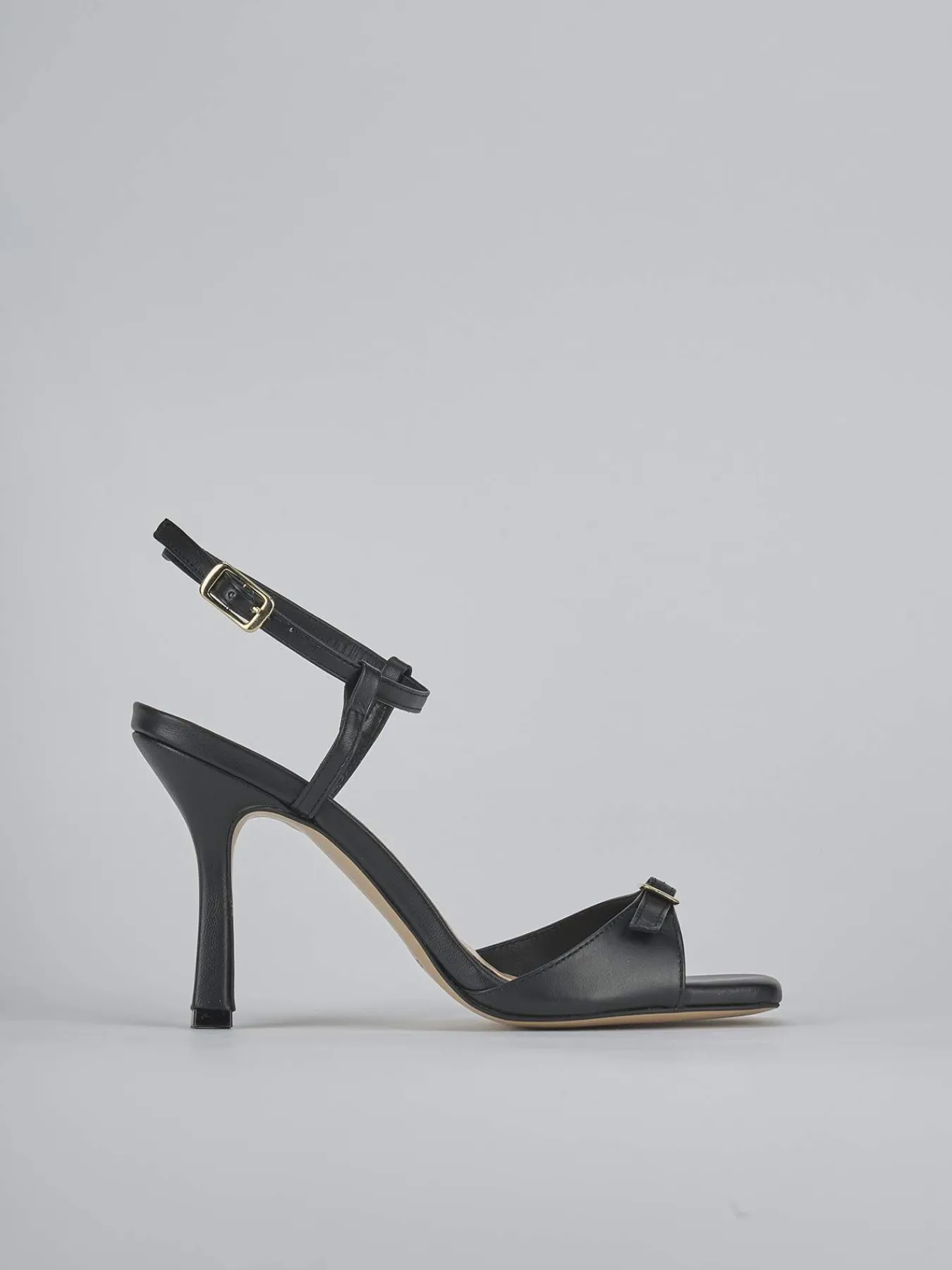 Sandalo tacco 9 cm fondo in cuoio e soletto interno in vera pelle. Tomaia in morbida pelle, punta squadrata, fascia unica con fibbia regolabile, comoda chiusura in caviglia con cinturino con fibbia regolabile e nuovissimo tacco rocchetto. Versatile per ogni tua occasione. .
