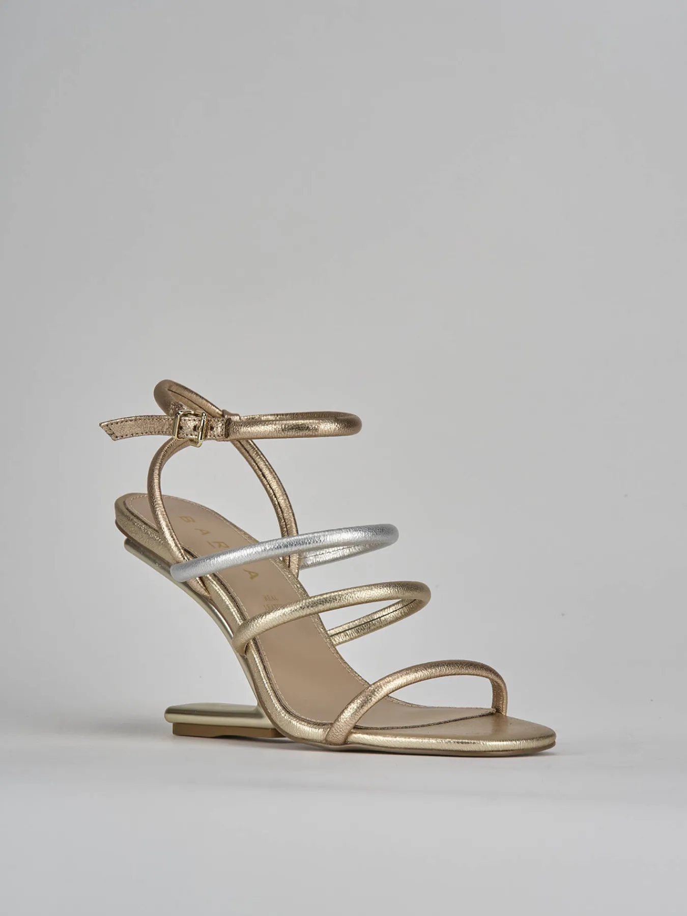 Sandalo tacco 9 cm fondo in leggerissima gomma e soletto interno in vera pelle. tomaia in morbida pelle, punta leggermente squadrata, fasce e cinturino con fibbia regolabile per un look cool. Tacco svasato geometrico cool che ti farà sicuramente notare.