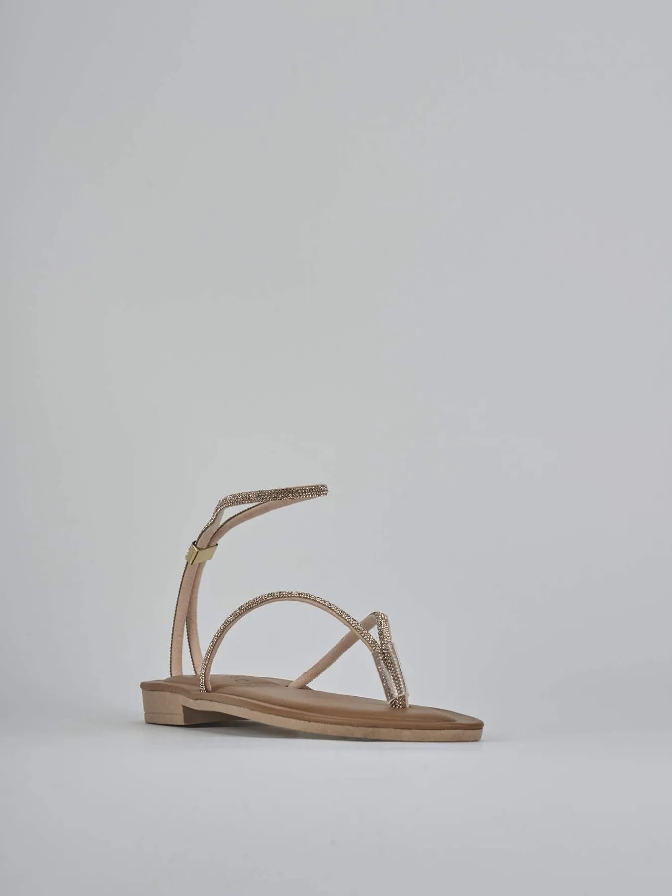 La punta affusolata e il design infradito si combinano armoniosamente, mentre il cinturino alla caviglia offre un tocco di sicurezza e raffinatezza.