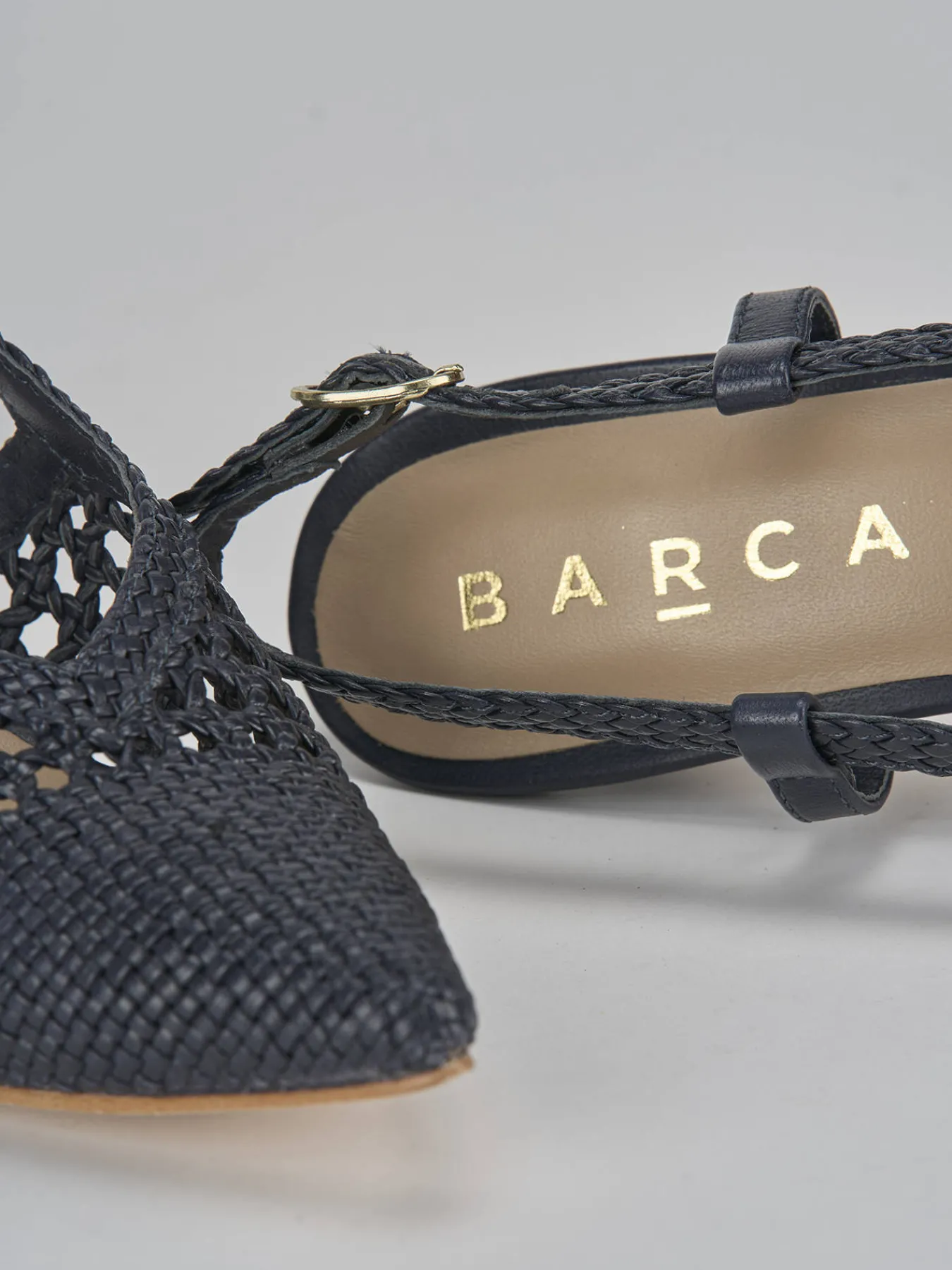 Slingback tacco 5.5 cm fondo in cuoio e soletto interno in vera pelle. Tomaia in morbida pelle finemente intrecciata, punta sfilata, scollo a ‘V’, cinturino con fibbia regolabile e tacco fino per un tocco glamour ai tuoi look.