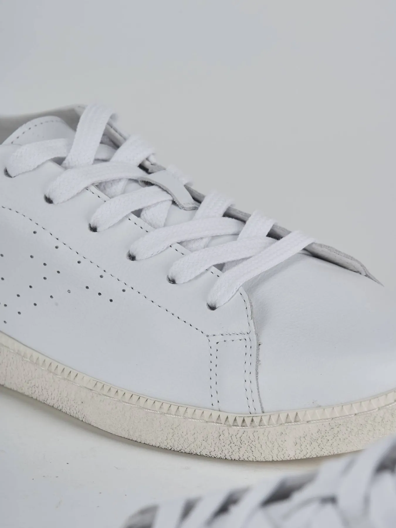I lacci bianchi si integrano armoniosamente con la tomaia, mentre i fori laterali offrono un design arioso e moderno.