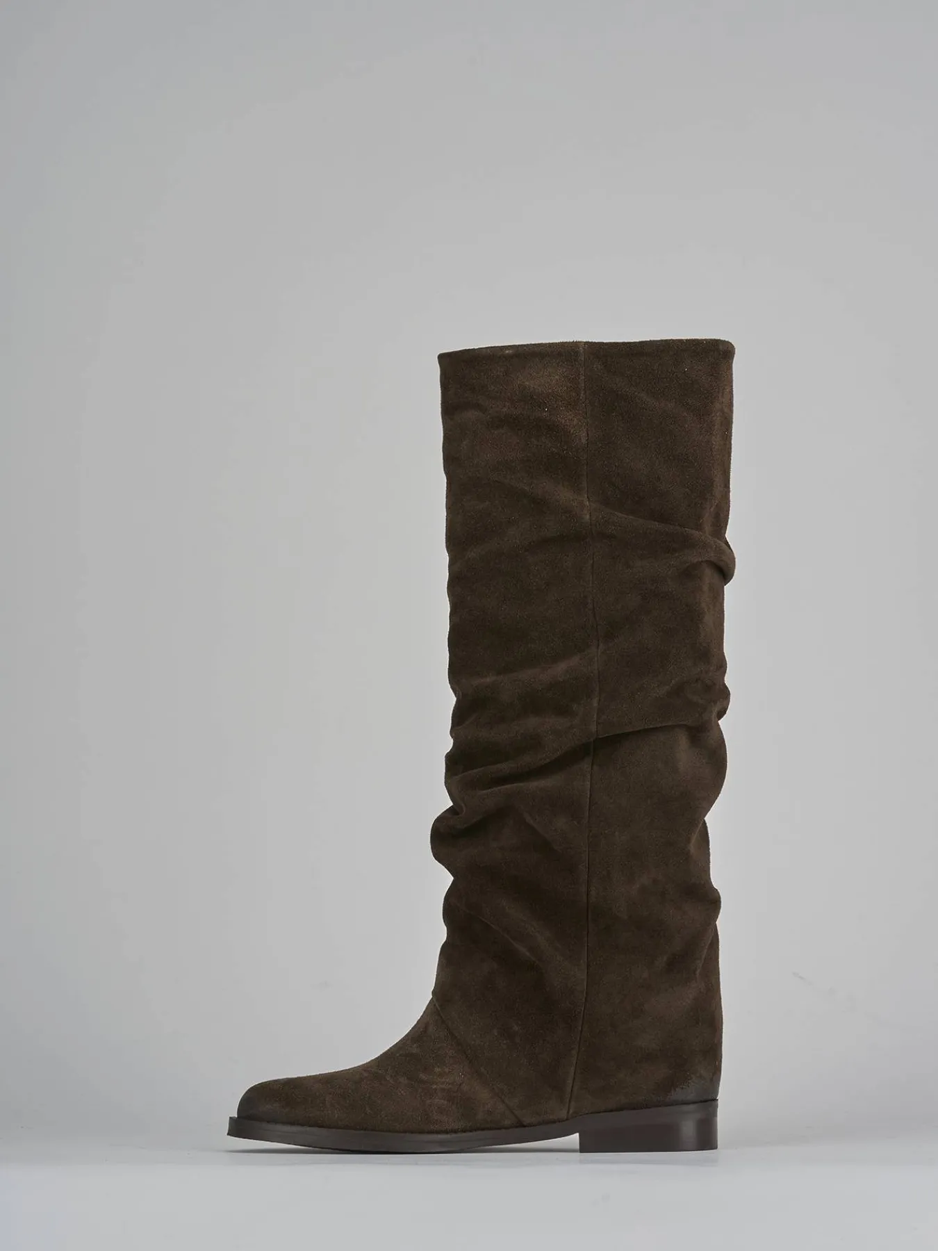 Realizzato in morbida pelle scamosciata color testa di moro, questo stivale è un must-have per il tuo guardaroba.