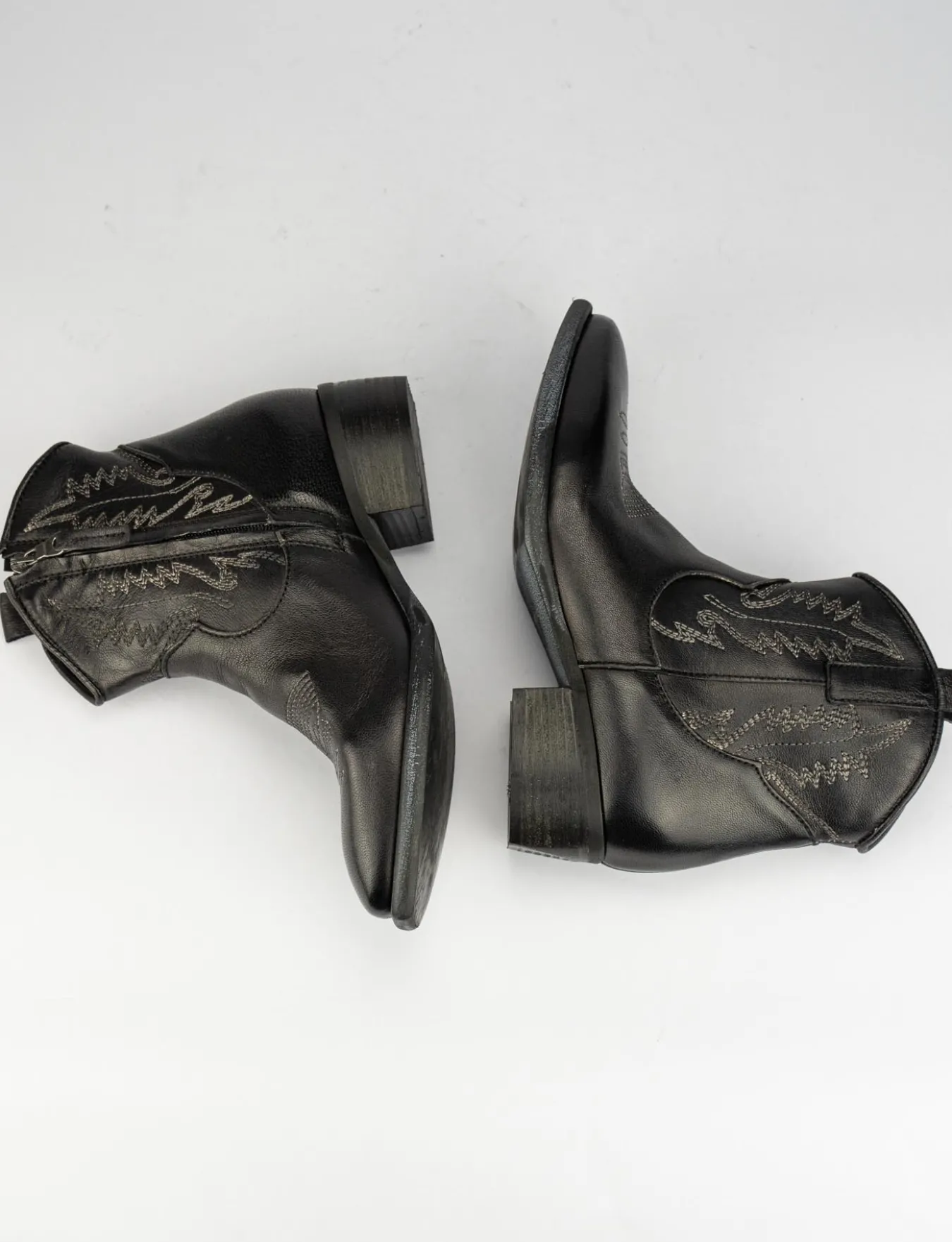 Stivale tronchetto tacco 3cm, fondo gomma e soletto interno in vera pelle. Tomaia in morbida pelle, modello texano con ricami fatti a mano per un look cool.