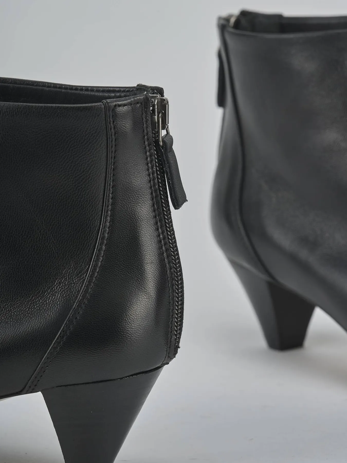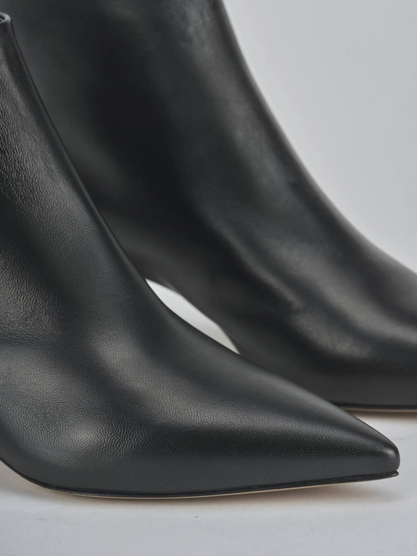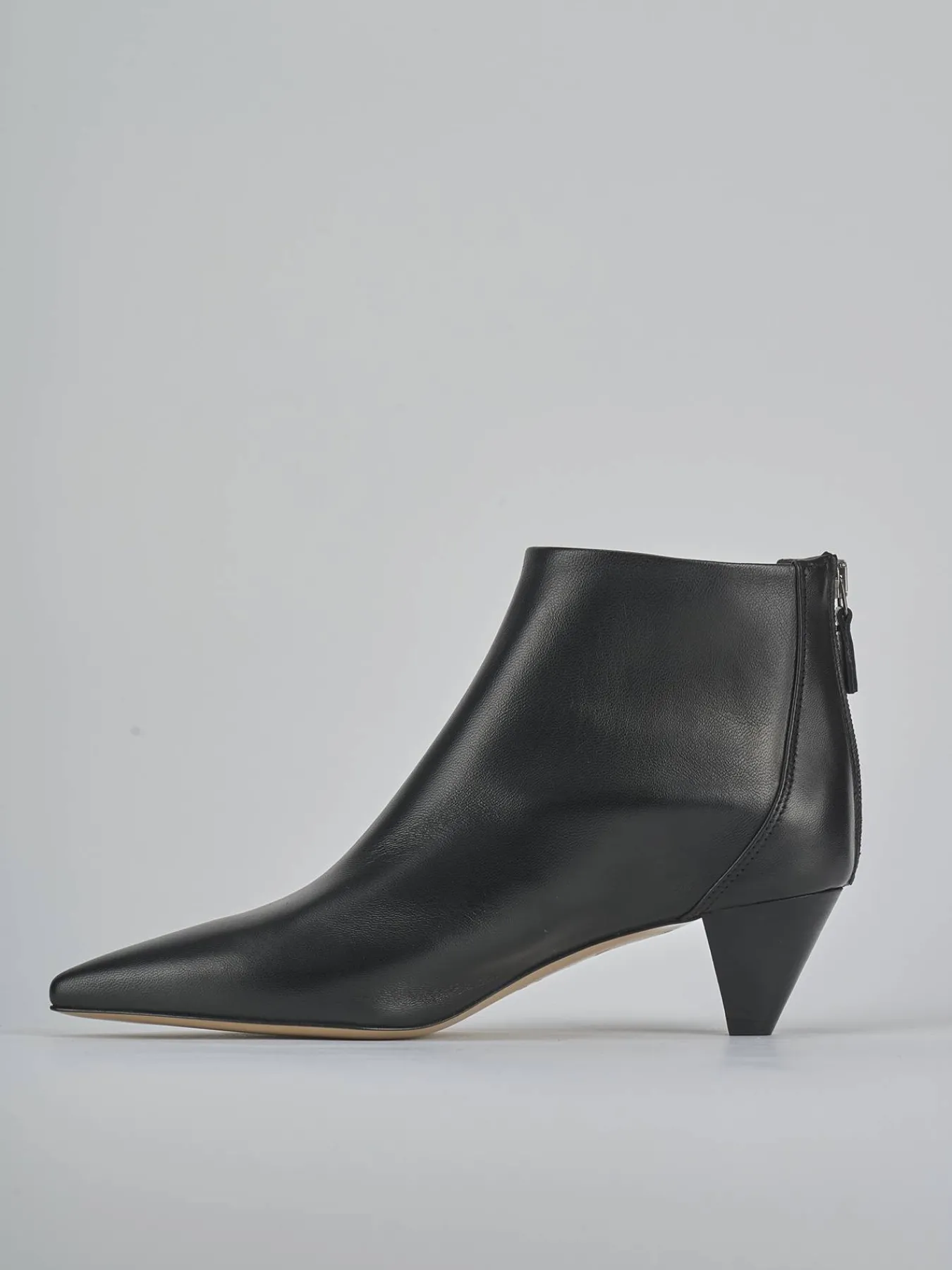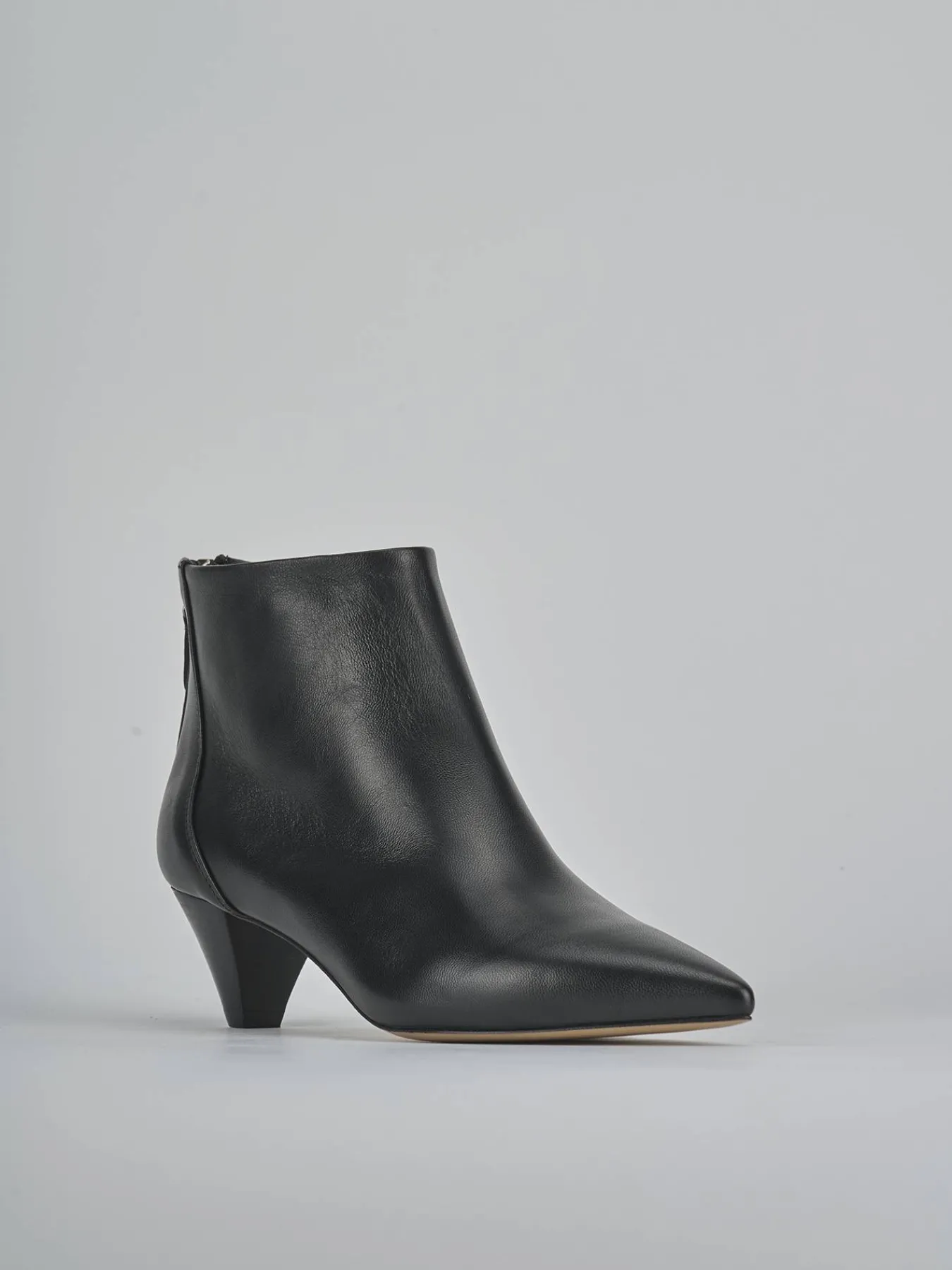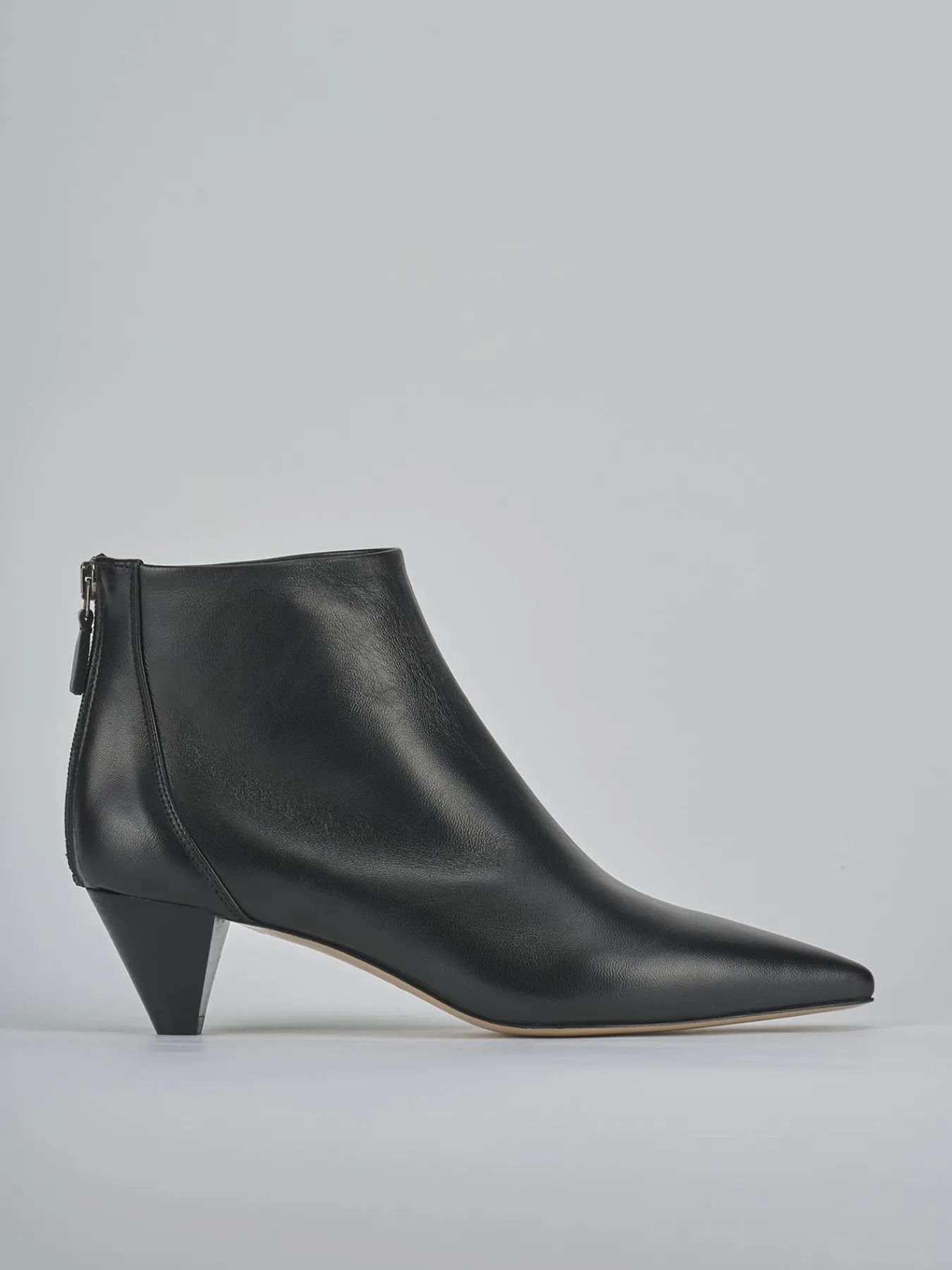 Stivaletto tacco 5 cm fondo in cuoio e soletto interno in vera pelle. Tomaia in morbida pelle, punta sfilata, cuciture a mano, comoda cerniera posteriore e tacco a cono effetto legno ton sur ton per un look che ti farà notare.