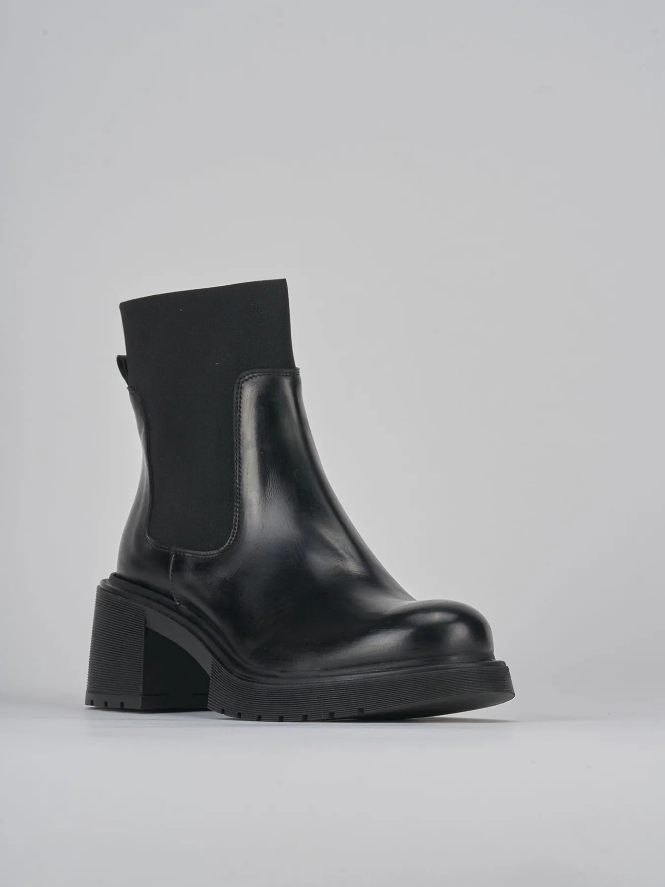 Stivaletto tacco 6 cm fondo in gomma e soletto interno in vera pelle. Tomaia in morbida pelle, punta arrotondata, elastico che facilita la calzata con possibilità di un piccolo risvolto e tacco grosso per i tuoi look cool.