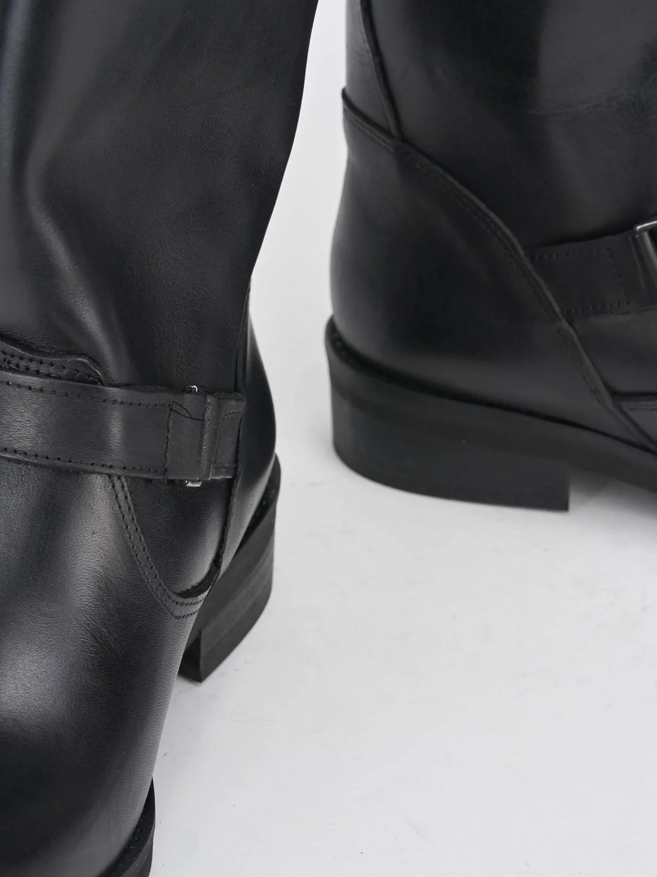 Tronchetto tacco 3 cm fondo in gomma e soletto interno in vera pelle. Tomaia in morbida pelle, punta tonda, fibbia all’altezza della caviglia e in cima al gambale per un look cool. Altezza gambale a tre quarti polpaccio.