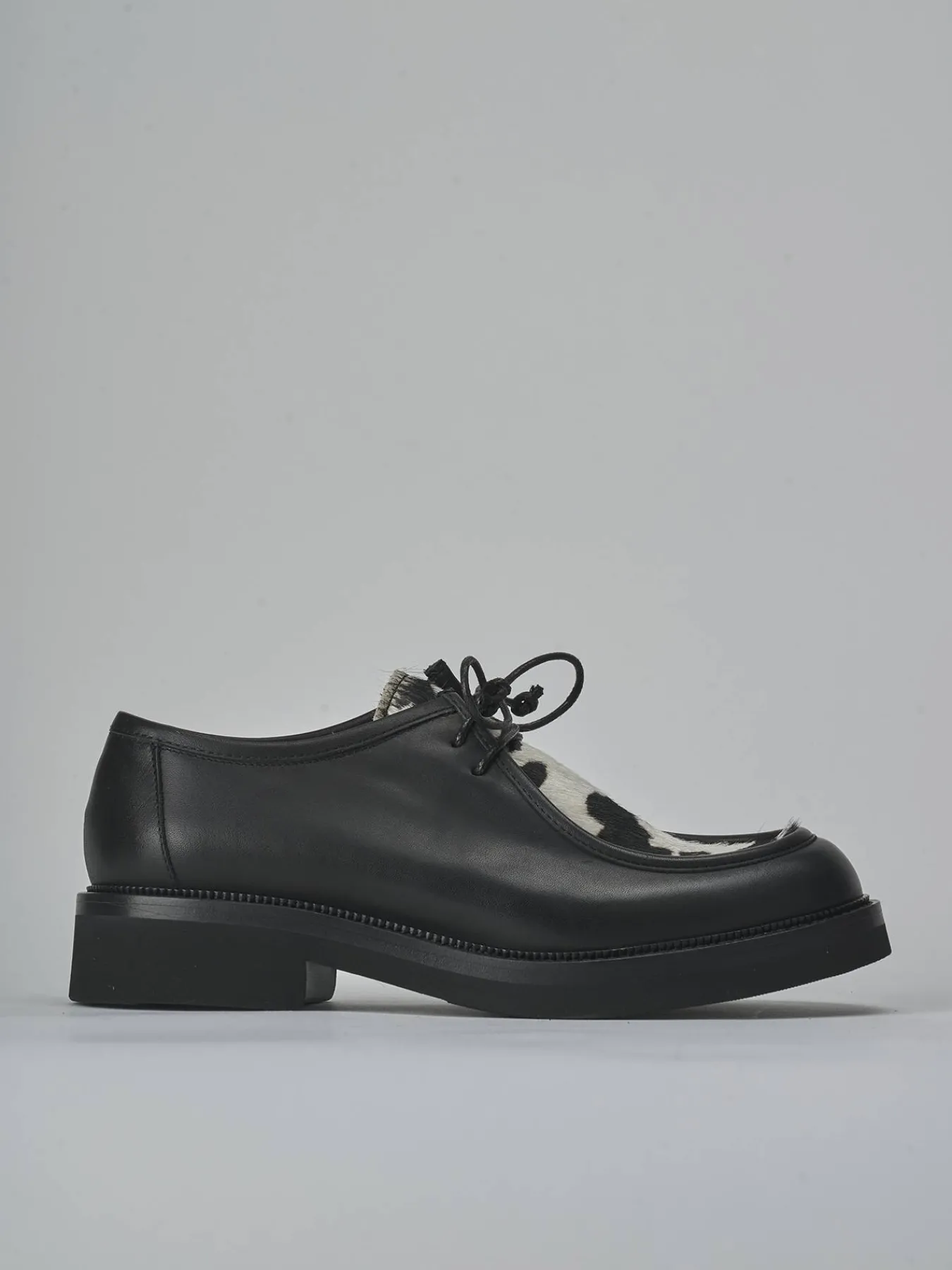 Le cuciture alla norvegese e gli inserti in pelle foderata in cavallino muccato donano un dettaglio distintivo e unico.