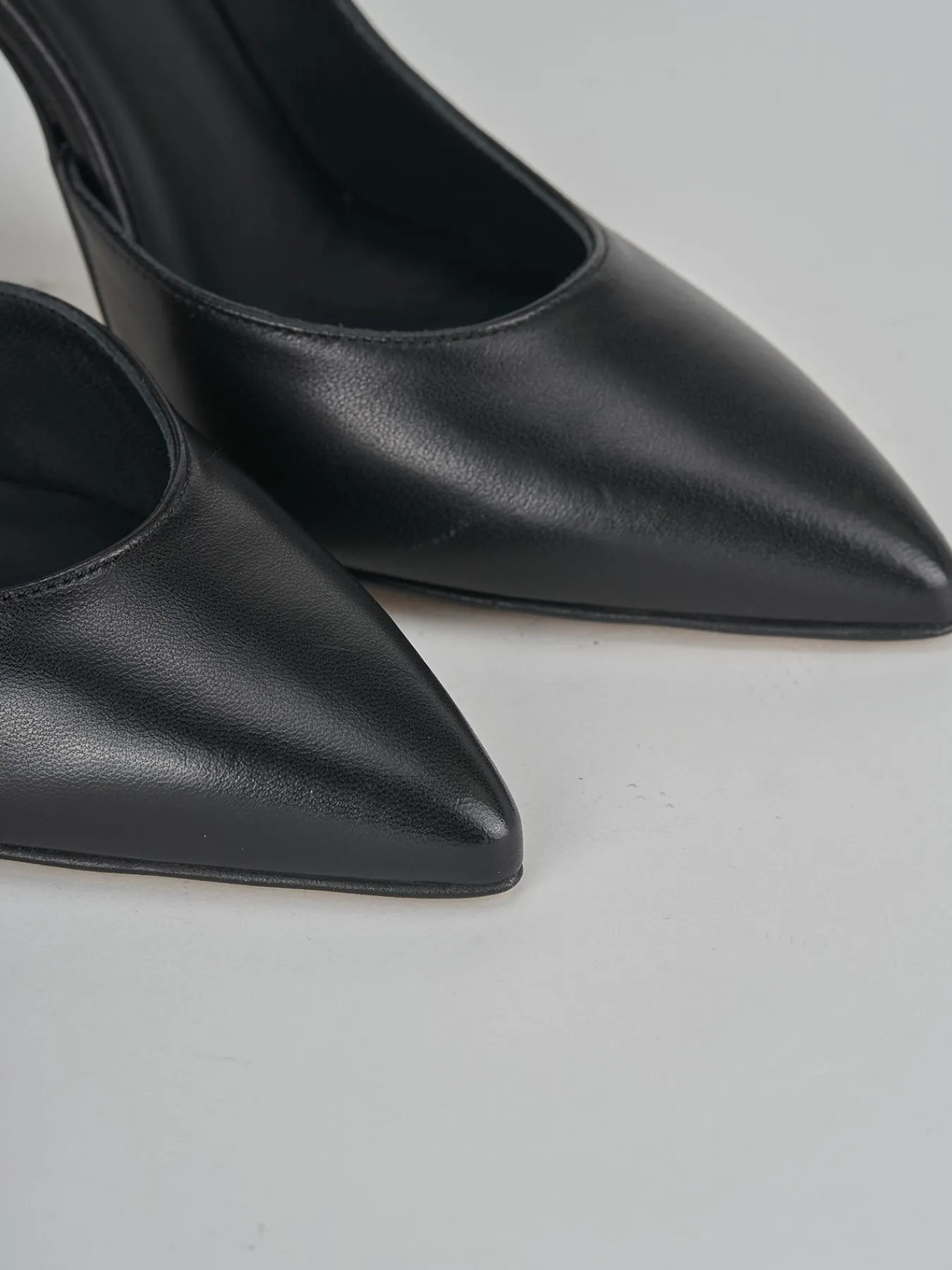 Realizzato in pelle nera nappata, offre una punta sfilata che conferisce raffinatezza e modernità.