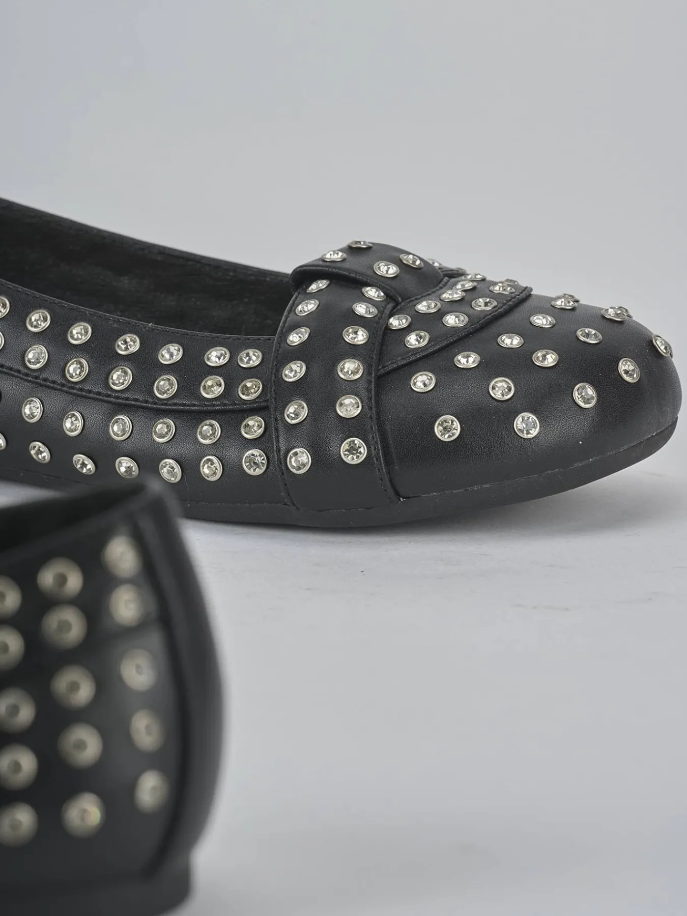 La punta tonda e le cuciture a mano aggiungono un tocco di artigianalità, mentre la fascia decorata con borchie dona un twist cool alla classica scarpa da donna.