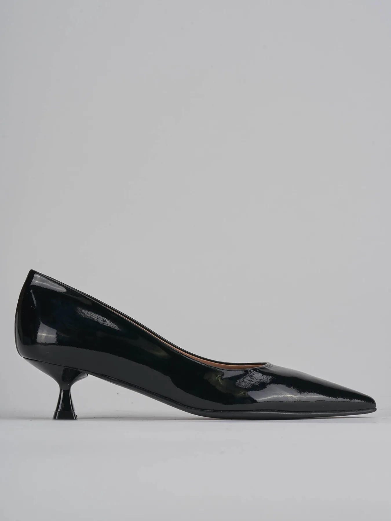 decolte’ tacco 4.5 fondo in gomma e soletto interno in vera pelle. tomaia in morbida pelle effetto verniciato, punta sfilata, apertura svasata, tacco rocchetto in abs, per un tocco cool ai tuoi outfit.