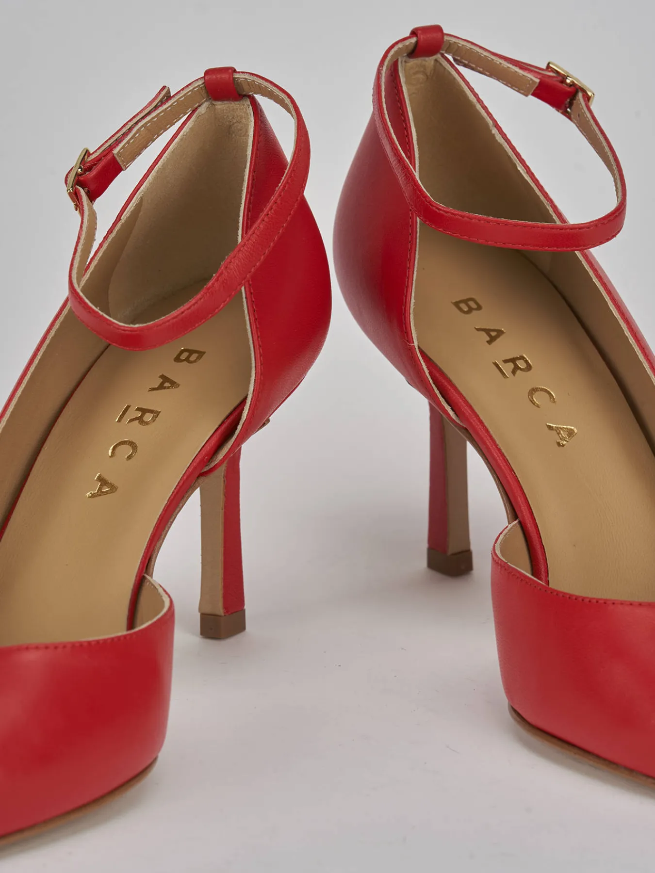 Bebe’ tacco 7 cm fondo in cuoio e soletto interno in vera pelle. Tomaia in morbida pelle nappata, punta sfilata, scollo a ‘U’, lato interno aperto, cinturino in caviglia regolabile e tacco rocchetto per un look cool.