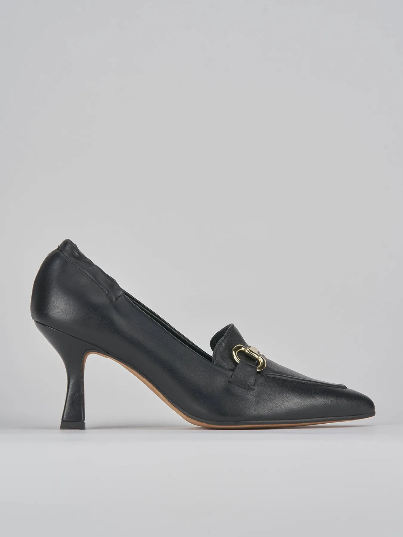 Decoltè tacco 7 cm fondo in cuoio e soletto interno in vera pelle. Tomaia in morbida pelle nappata, punta sfilata, cuciture in rilievo, raffinato morsetto e tacco a rocchetto per un look perfetto per completare i tuoi oufit eleganti. tallone morbido ed elasticizzato per il massimo del comfort.