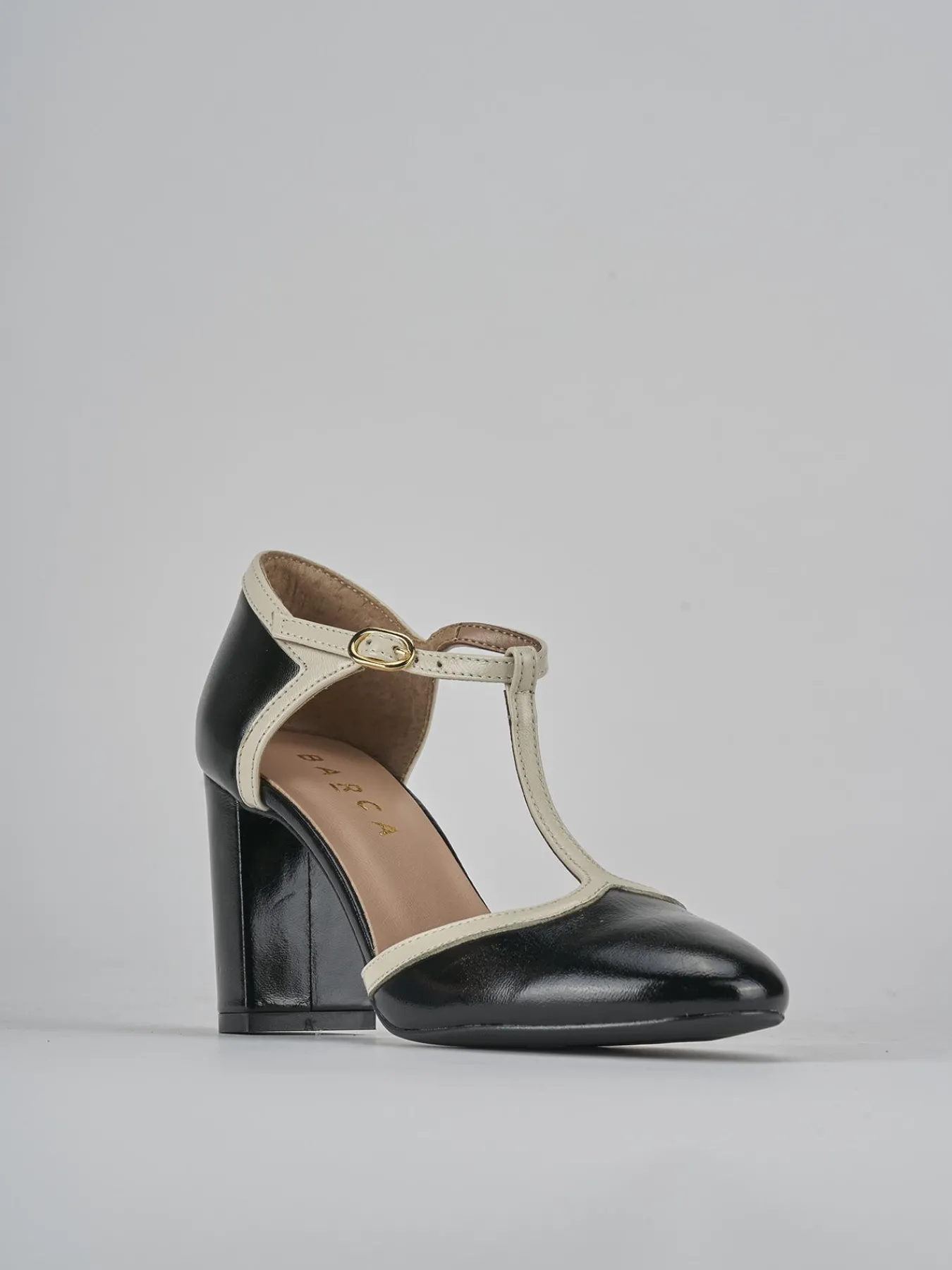 Il tacco grosso garantisce stabilità, mentre il fondo in leggerissima gomma e il soletto interno in vera pelle assicurano comfort per tutto il giorno.