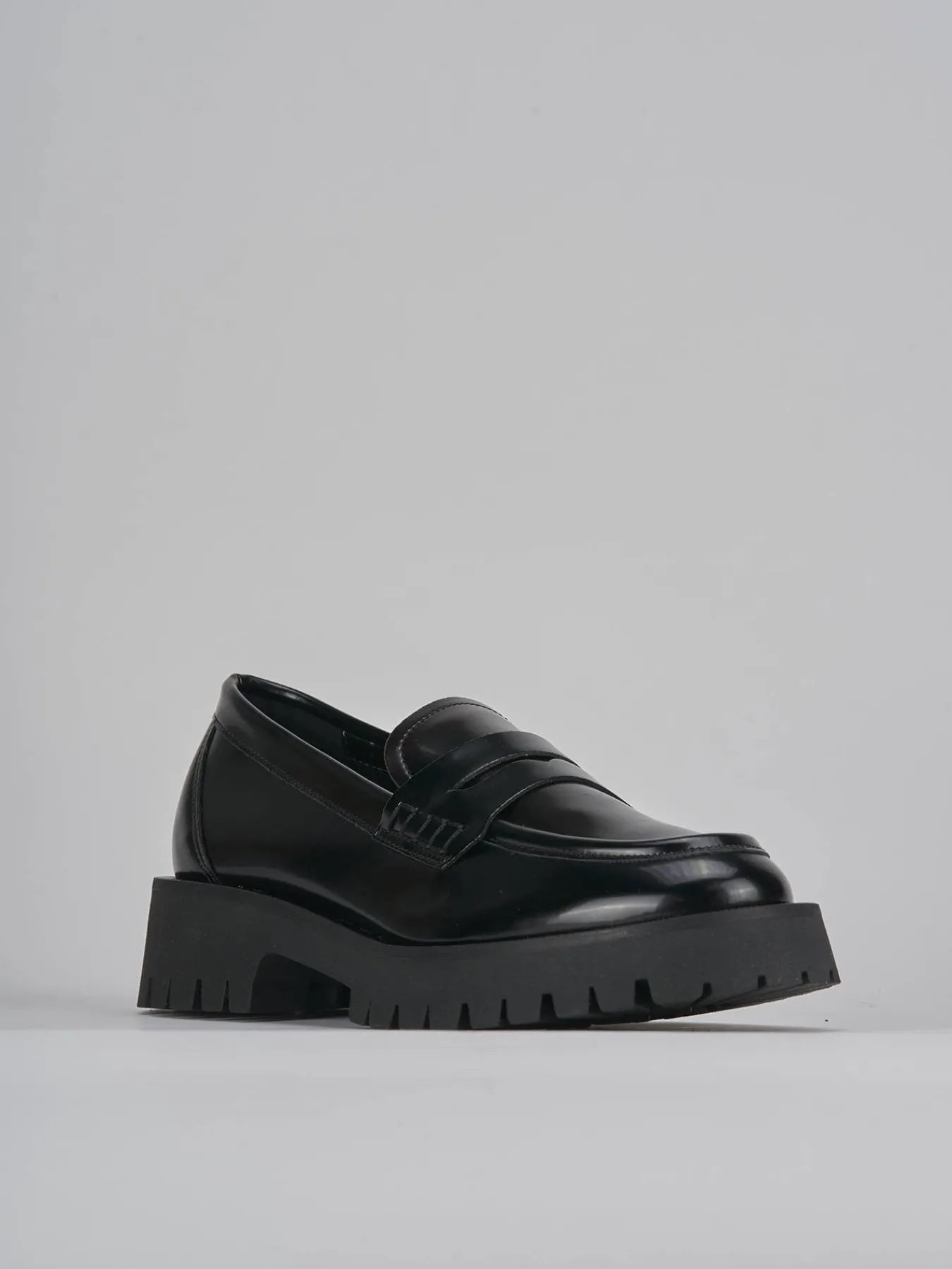 mocassino tacco 2 cm fondo in gomma e soletto interno in vera pelle. tomaia in morbida pelle abrasivata, punta leggermente squadrata, cuciture in rilievo, mascherina a bocca di leone e fondo carro armato per un look chic.