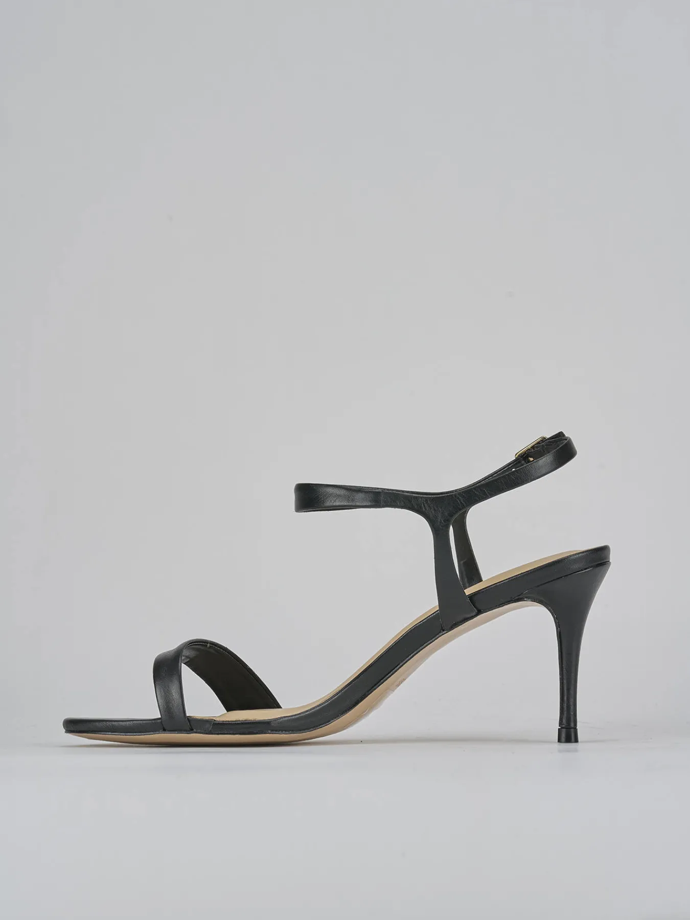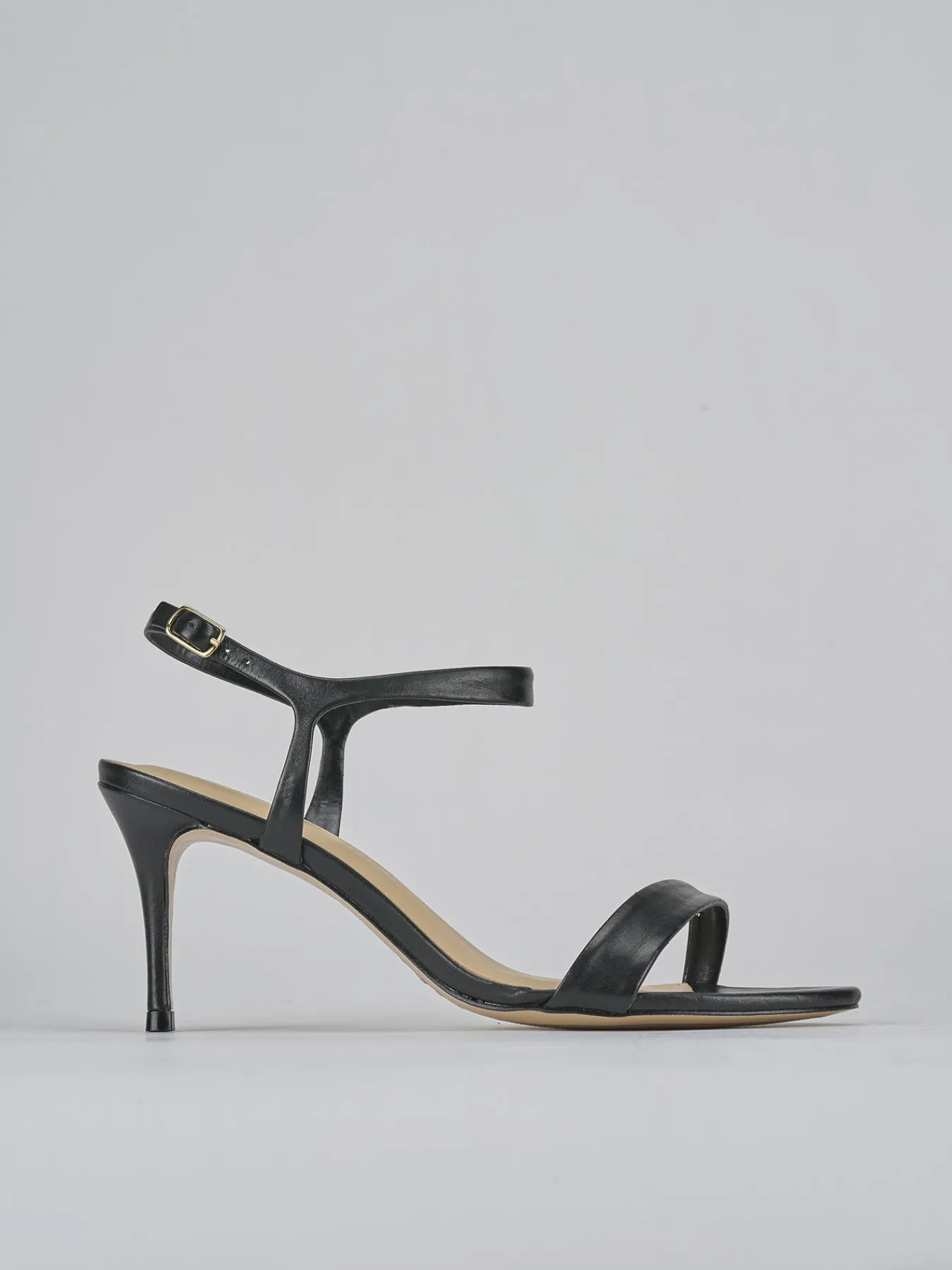 Sandalo tacco 7 cm fondo inleggerissima gomma e soletto interno in vera pelle. tomaia in morbida pelle, punta tonda, fascia e cinturino che accompagna la caviglia con fibbia regolabile e tacco fino. Perfetto con un vestito o dei pantaloncini e t-shirt.