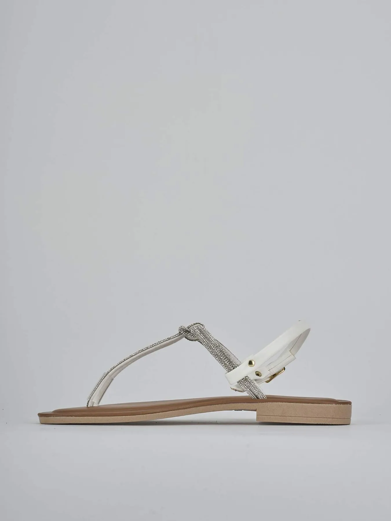 Realizzato in morbidissima pelle e decorato con strass sulla tomaia a T, questo sandalo è ideale per un look ultraminimal.
