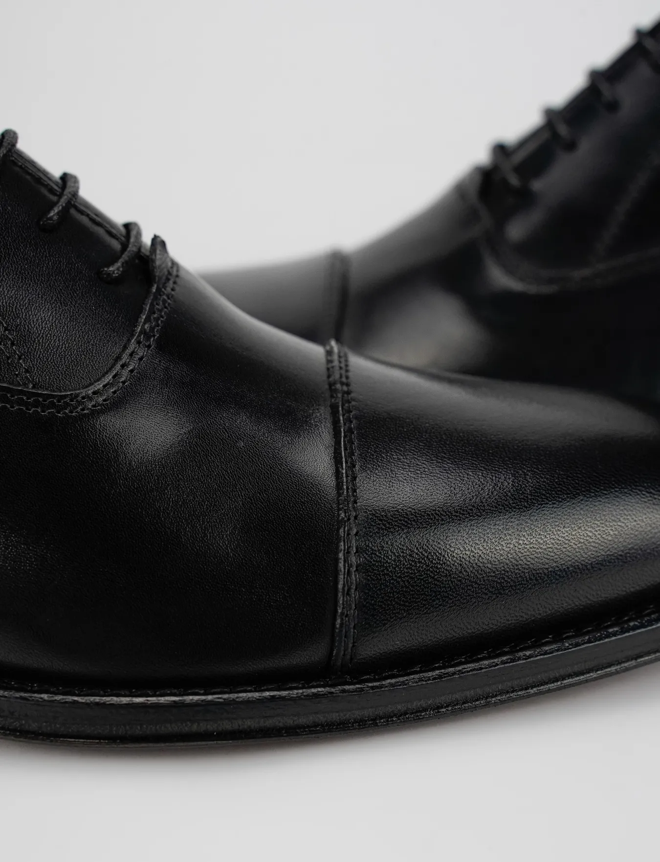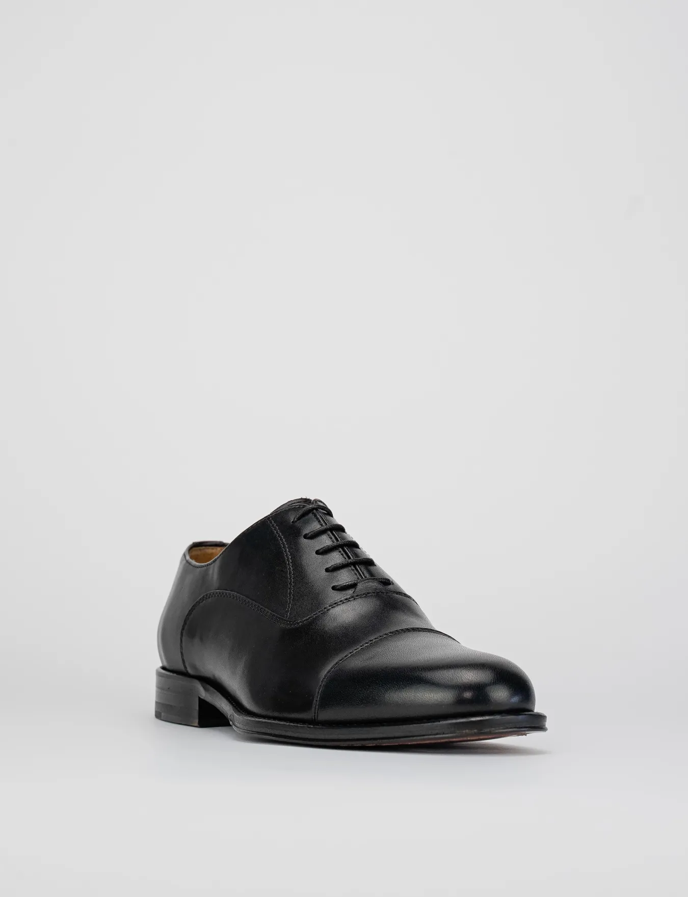 scarpa lacci tacco 2 cm, fondo in cuoio e soletto interno in vera pelle. Tomaia in morbidissima pelle di vitello con allacciatura a cinque fori e puntale evidenziato da doppia cucitura.