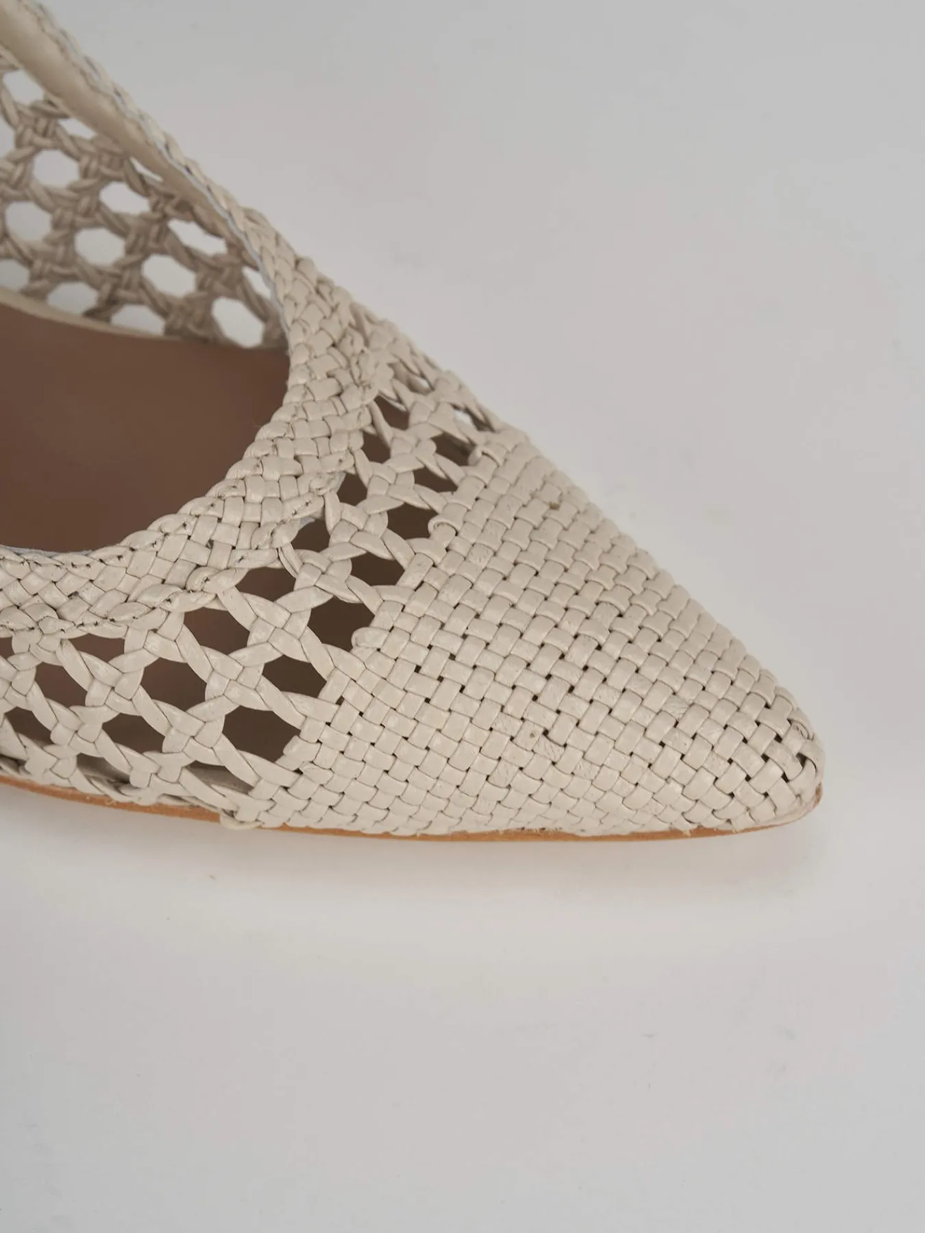 Slingback decolte tacco 5 cm fondo cuoio e soletto interno in vera pelle. tomaia in morbida pelle intrecciata artigianalmente, punta sfilata e chiusura con cinghietta posteriore per un look cool-chic. Tacco stabile adatto ad ogni momento della tua giornata.