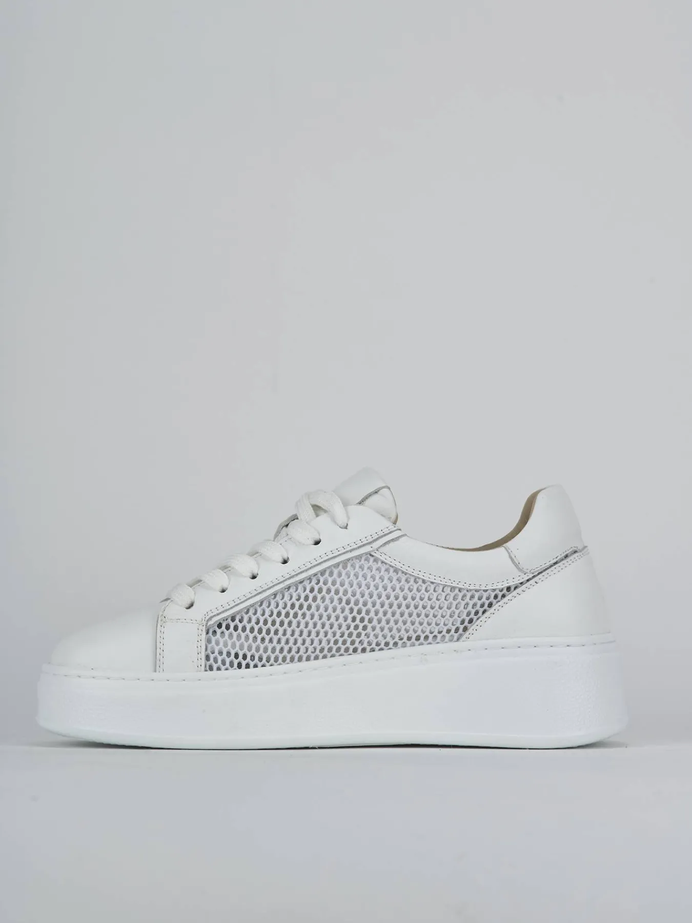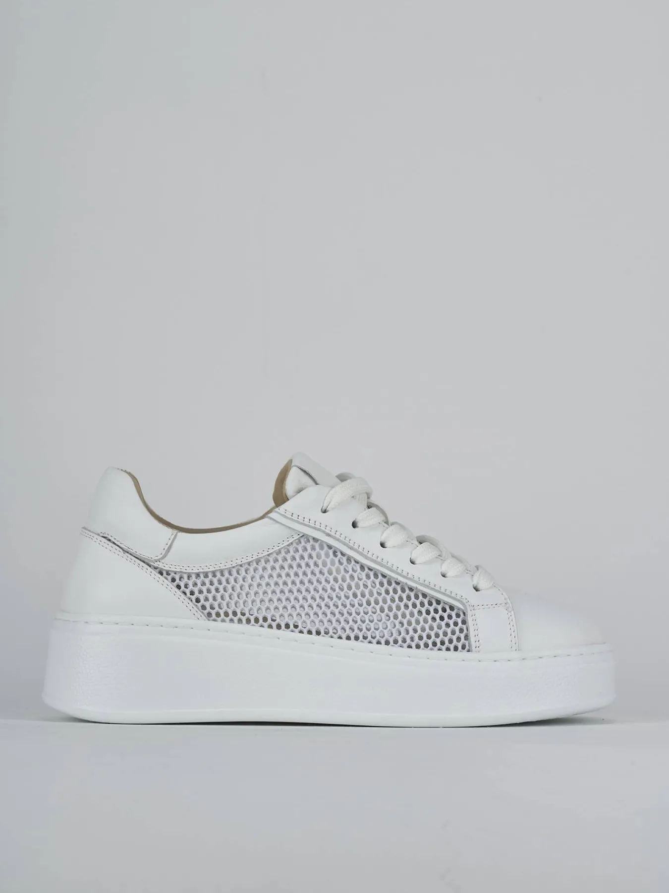 La tomaia presenta una rete elegante che aggiunge un tocco di originalità, mentre la punta affusolata e i lacci senza occhielli completano il look sofisticato.