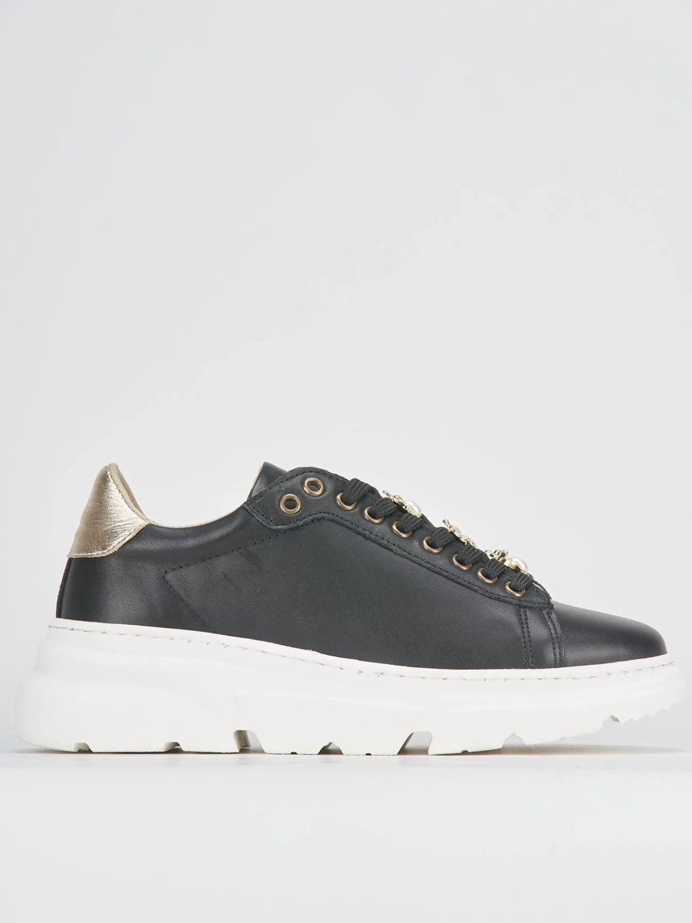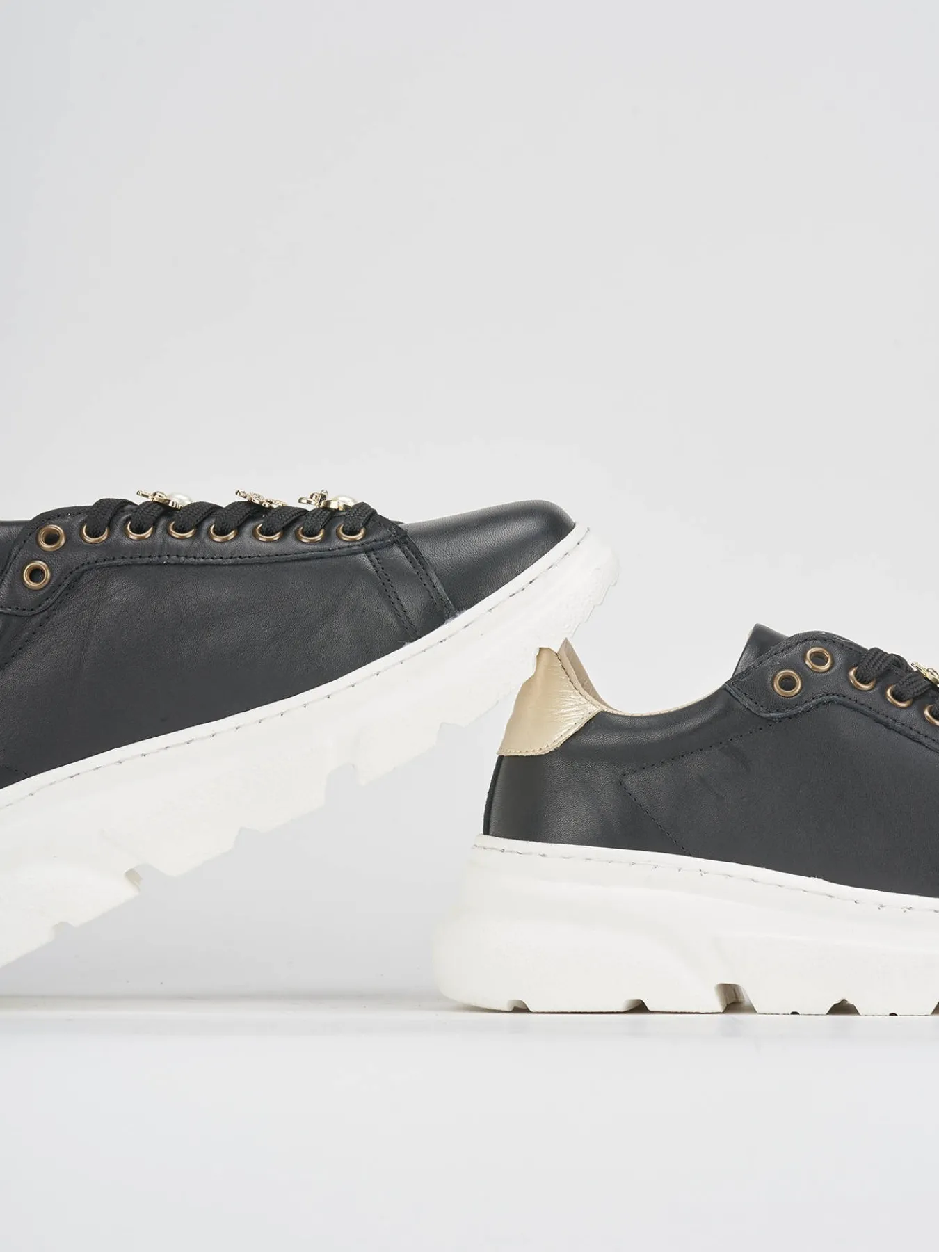 La tomaia in morbida pelle nera si combina con un fondo in gomma robusto, garantendo comfort e durata.