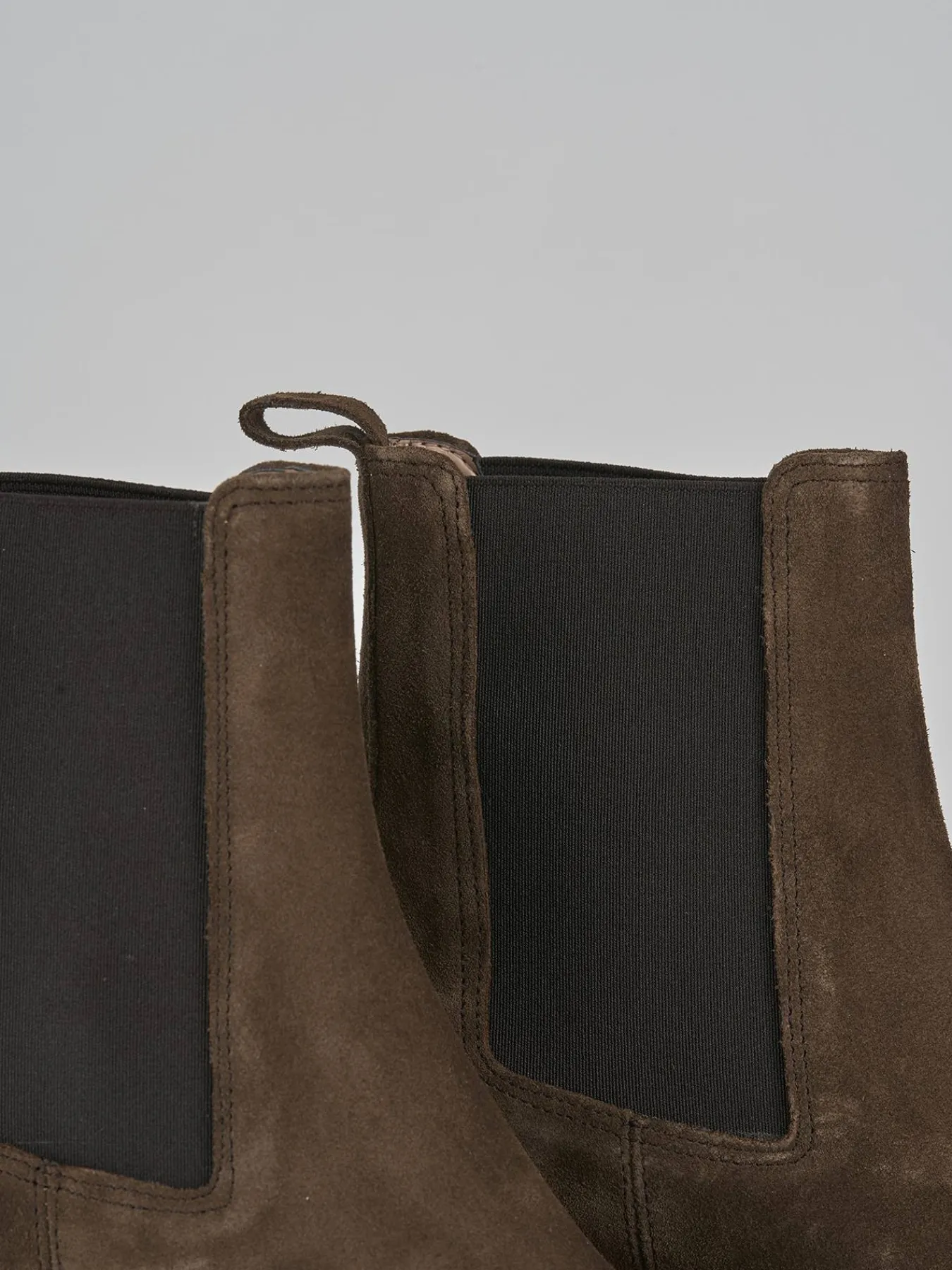 La tomaia è realizzata in morbida pelle scamosciata, con una punta sfilata che conferisce un aspetto sofisticato.