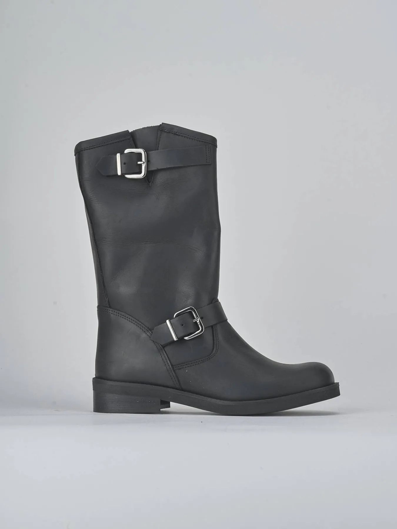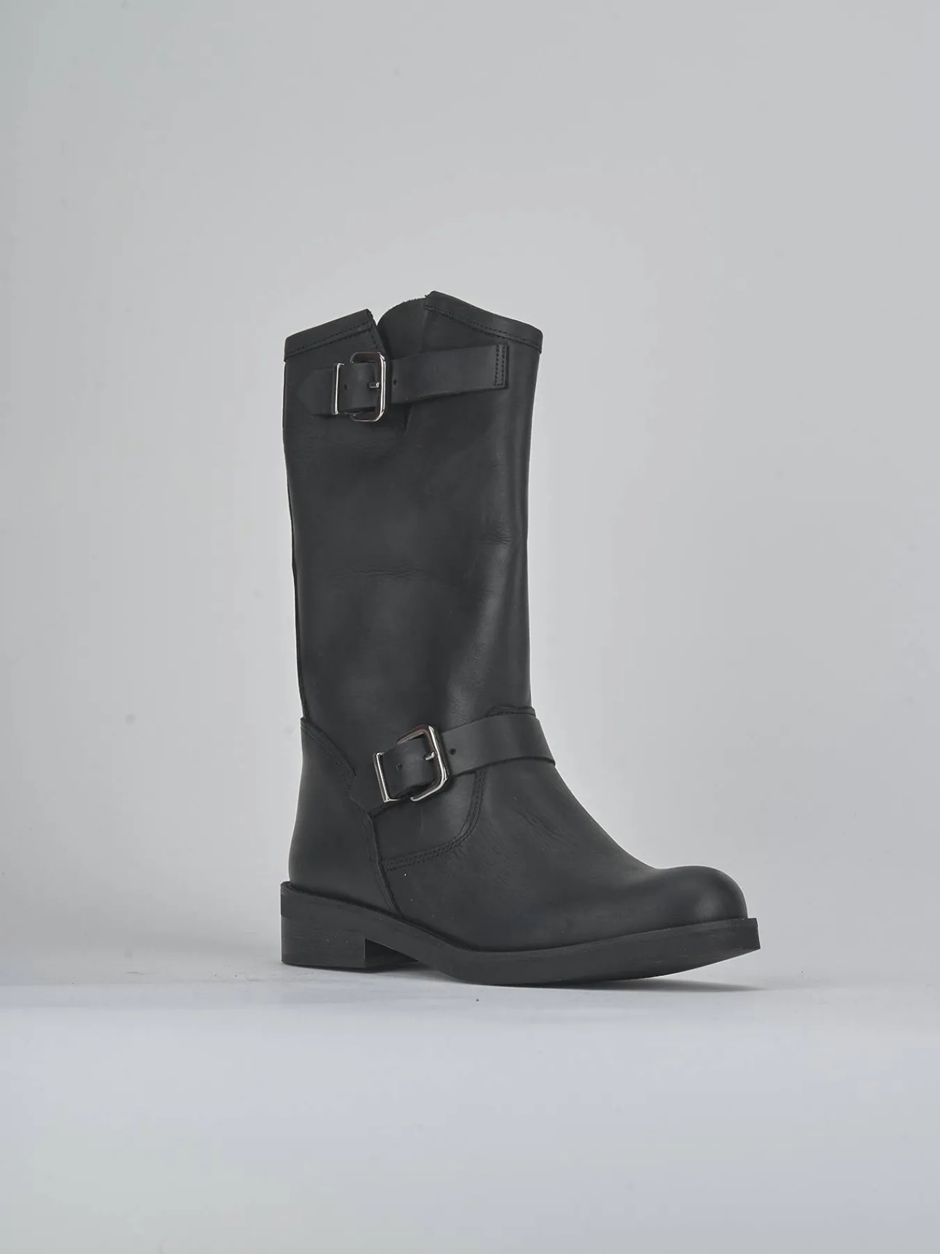 Il gambale ampio, che raggiunge i 3/4 dell’altezza del polpaccio, è arricchito da cuciture distintive e una doppia fibbia che aggiunge un tocco di stile moderno.