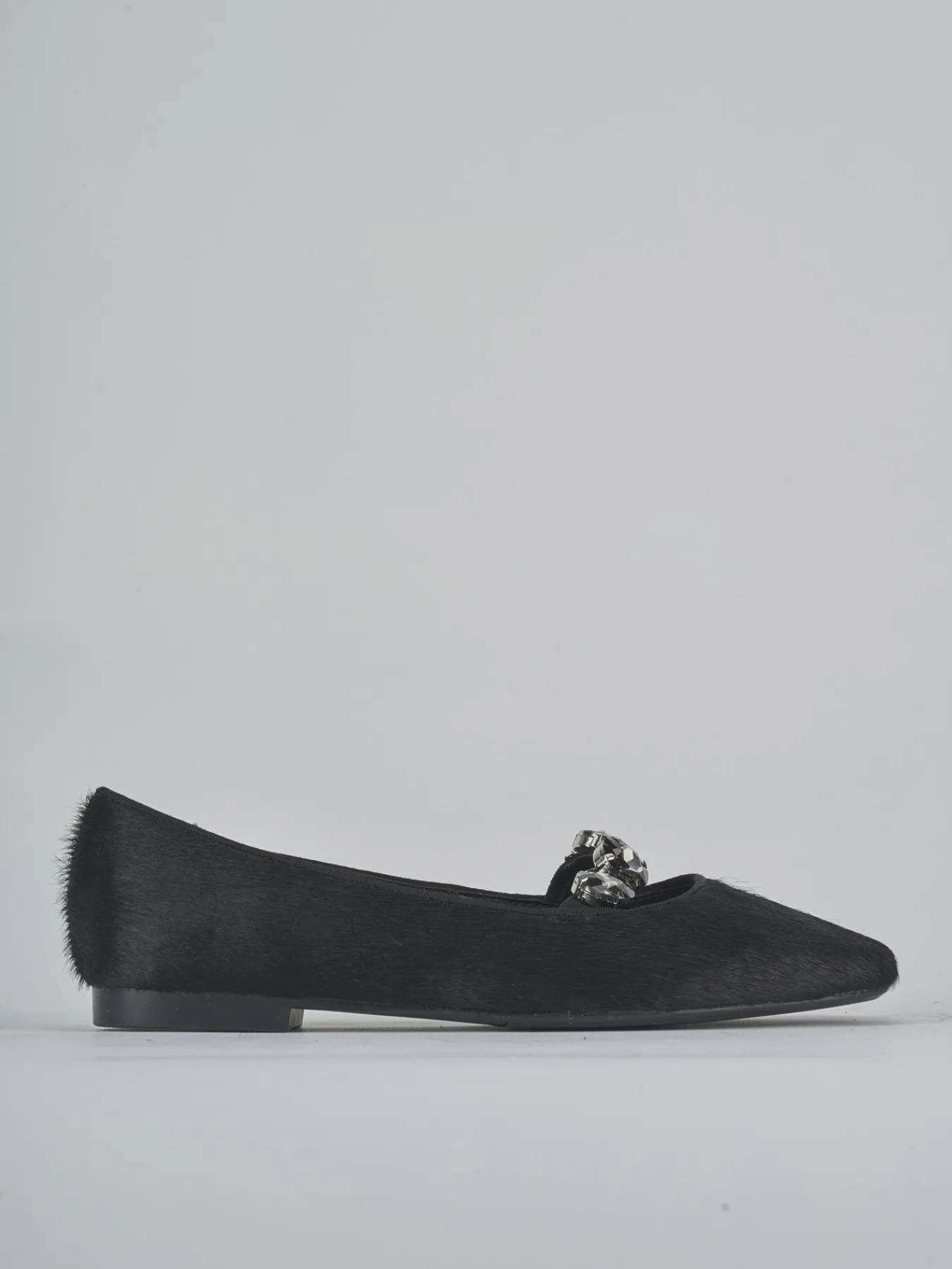 La tomaia è realizzata in morbida pelle foderata in cavallino, impreziosita da una punta leggermente squadrata e uno scollo elegante.