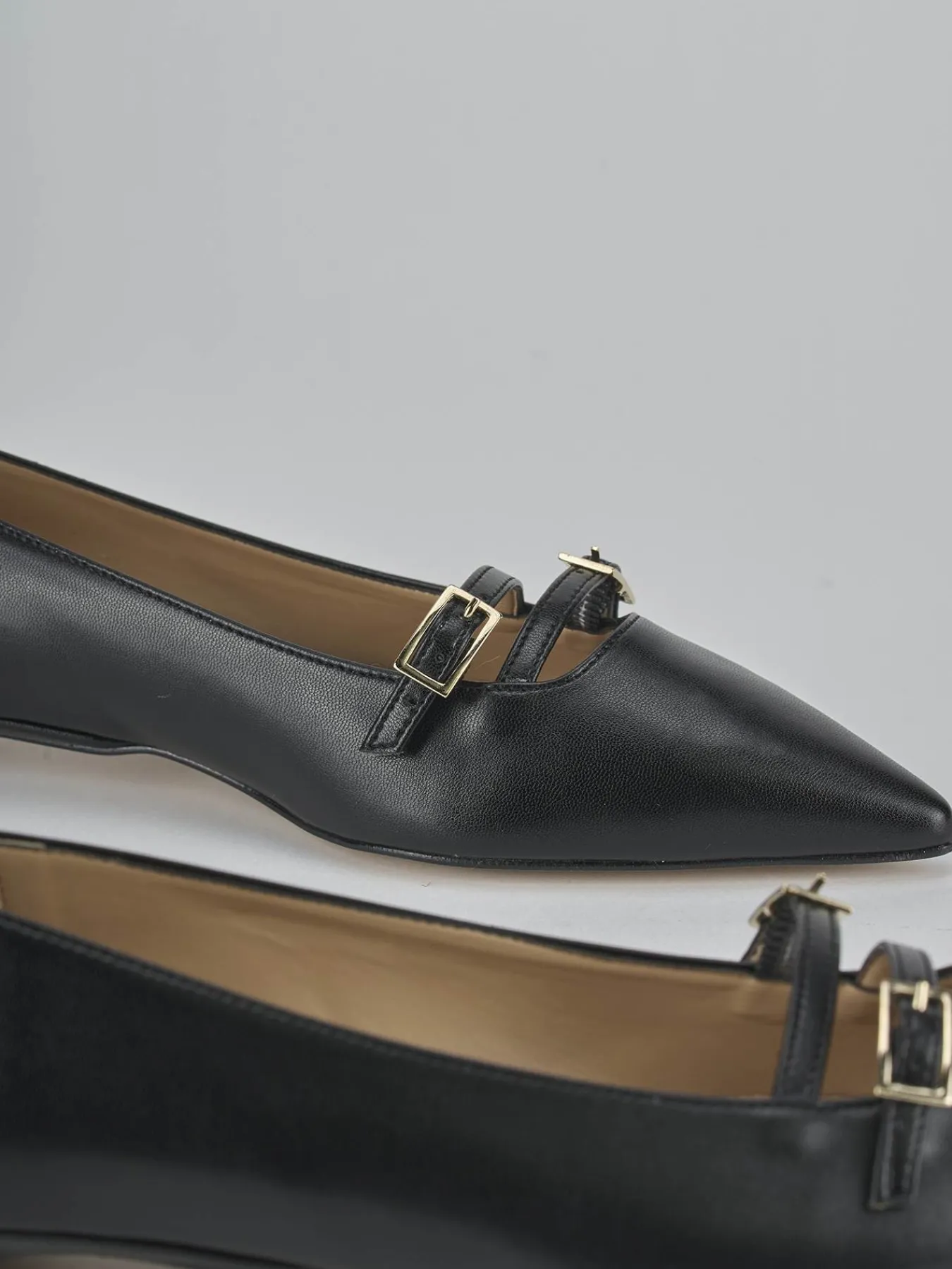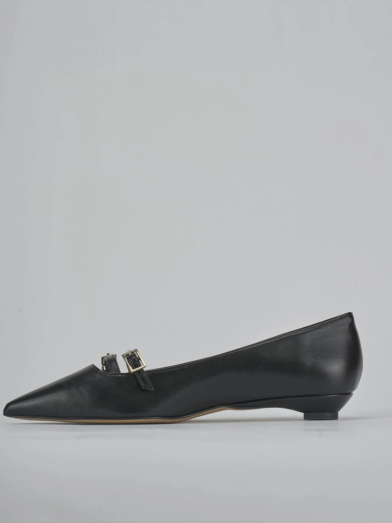 Ballerina tacco 2 cm fondo in leggerissima gomma e soletto interno in vera pelle. Tomaia in morbida pelle, punta sfilata, scollo squadrato, due cinturini con fibbia regolabile e tacco stabile cool per un look chic elegante.