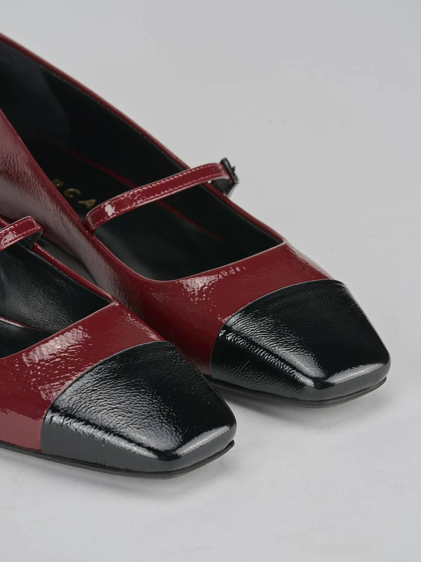 La punta e lo scollo squadrati, insieme al puntale bicolor a contrasto, aggiungono un dettaglio sofisticato al design.