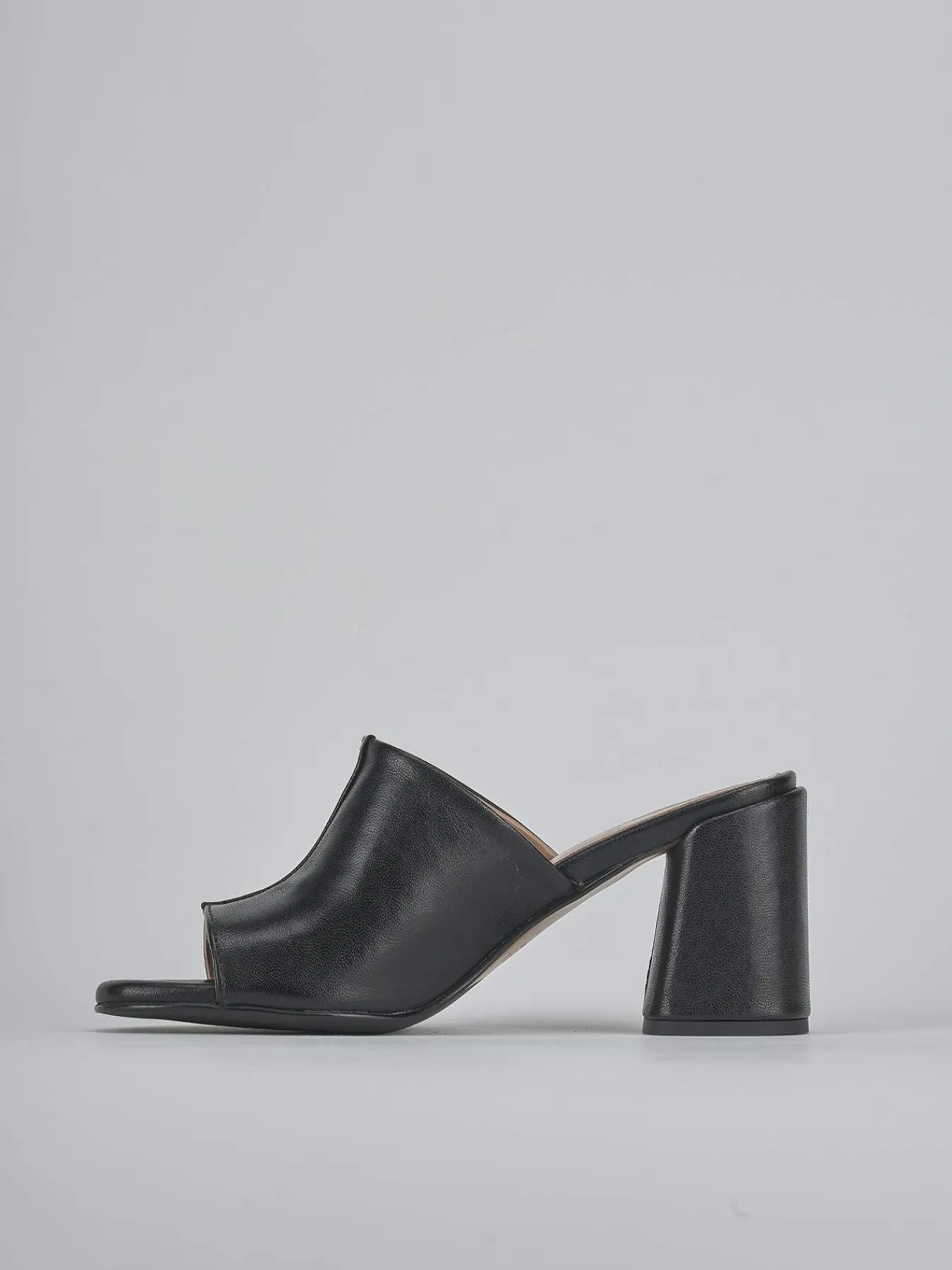 Ciabatta tacco 7 cm fondo in leggerissima gomma e soletto interno in vera pelle. Tomaia in morbida pelle, punta leggermente squadrata, fascia unica con cuciture a vista a mano e tacco grosso. Perfetto per la tua estate italiana.