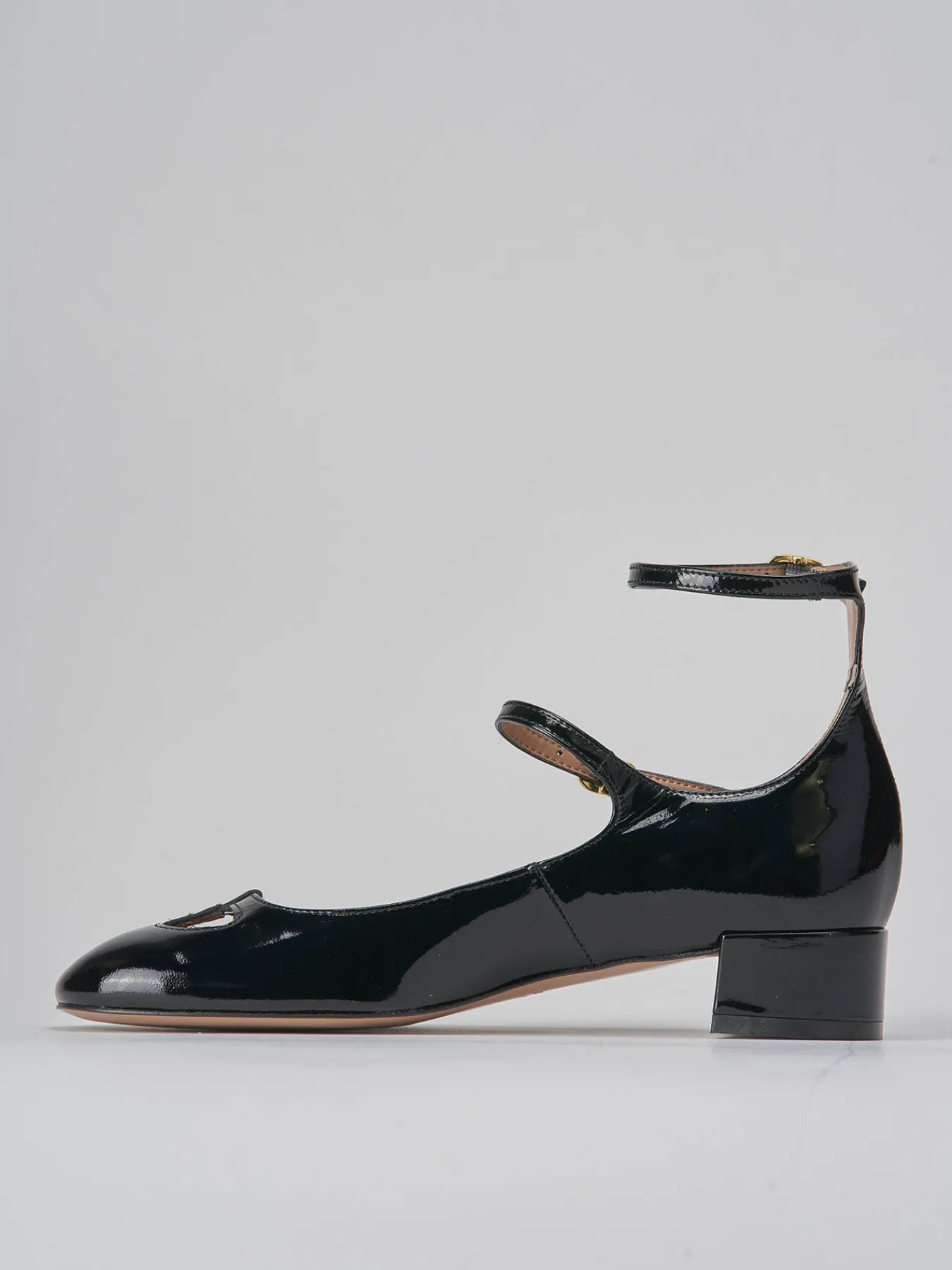 Bebe’ maryjane tacco 3 cm fondo in cuoio e soletto interno in vera pelle. tomaia in morbida pelle effetto verniciato, punta sfilata, scollo a ‘V’, tre cinturini con fibbia regolabile anche in caviglia. Dalle linee semplici e definite, è adatto sia per le occasioni più speciali che per la vita di tutti i giorni.